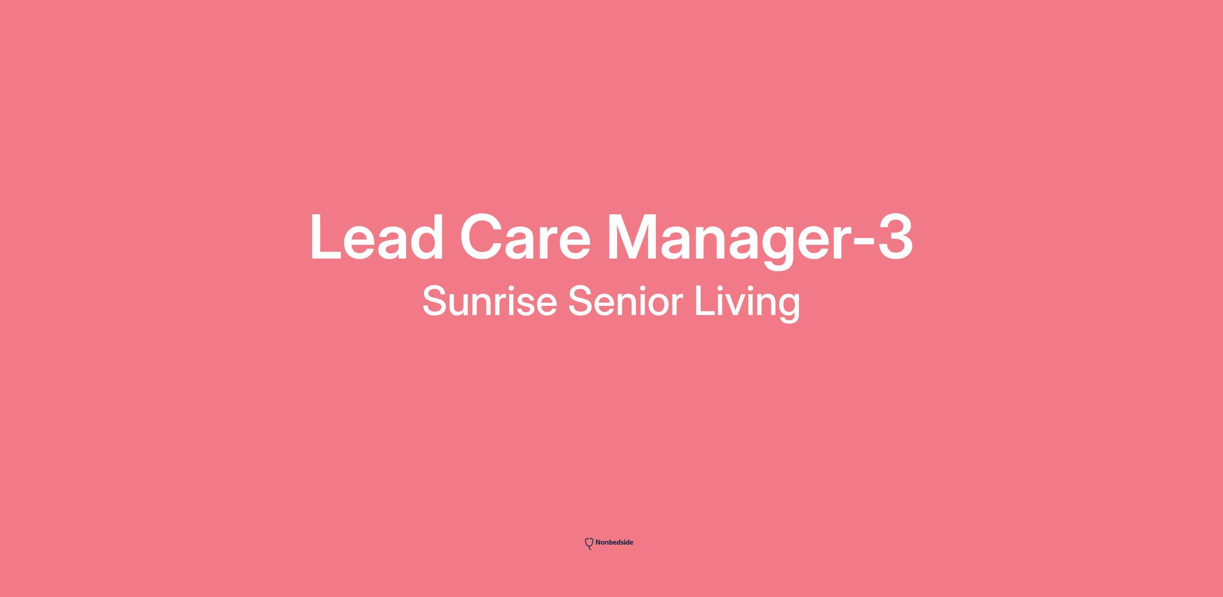 Lead Care Manager (Reminiscence) Join to apply for the Lead Care Manager (Reminiscence) role at Sunrise Senior Living.