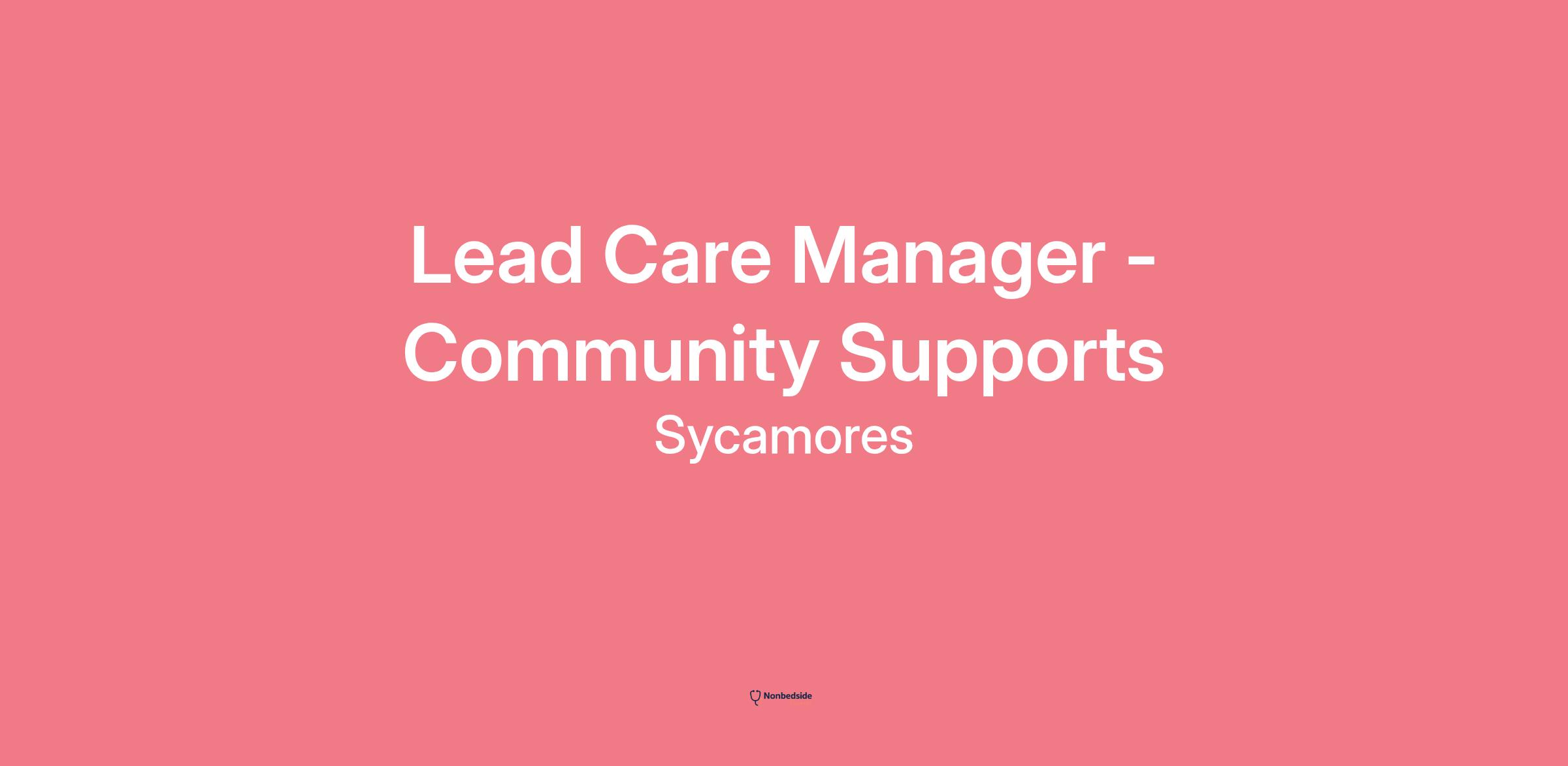 Join to apply for the Lead Care Manager - Community Supports role at Sycamores.