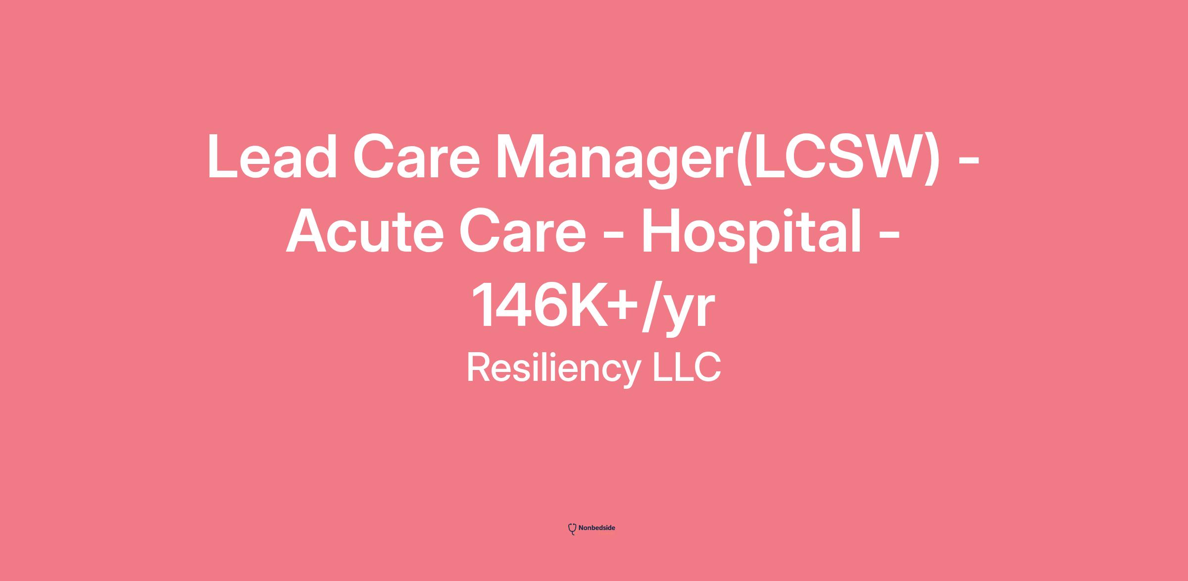 Job Description Lead Care Manager LCSW at our Health Center, located in Santa Monica, CA. The position available is for Full Time, 12:00pm-8:30pm shift. *$10k Hiring Bonus for eligible external candidates who meet all conditions for payment - this is in addition to the fantastic benefits and compensation package offered by the hospital that begin on your first day of employment. Join us and find out how many ways we offer you the chance to focus on what really matters - our patients. Case Management is a collaborative practice including patients, caregivers, nurses, social workers, physicians, payers, support staff, other practitioners and the community. The Case Management process facilitates communication and care coordination along a continuum through effective transitional care management. Recognizing the patient's right to self-determination, the significance of the social determinants of health and the complexities of care (barriers to coping, abuse, mental health, substance use, lack of resources, psychosocial issues, etc.). Required qualifications: Master's degree in social work from an accredited program. Upon hire: California Clinical Social Worker License 2 years of experience in healthcare related field (Acute, Ambulatory, or Post-Acute) 2 years of experience in Acute Care Management (Care Coordination) or successful completion of the Transitions in Practice (TIP) program for Care Managers.