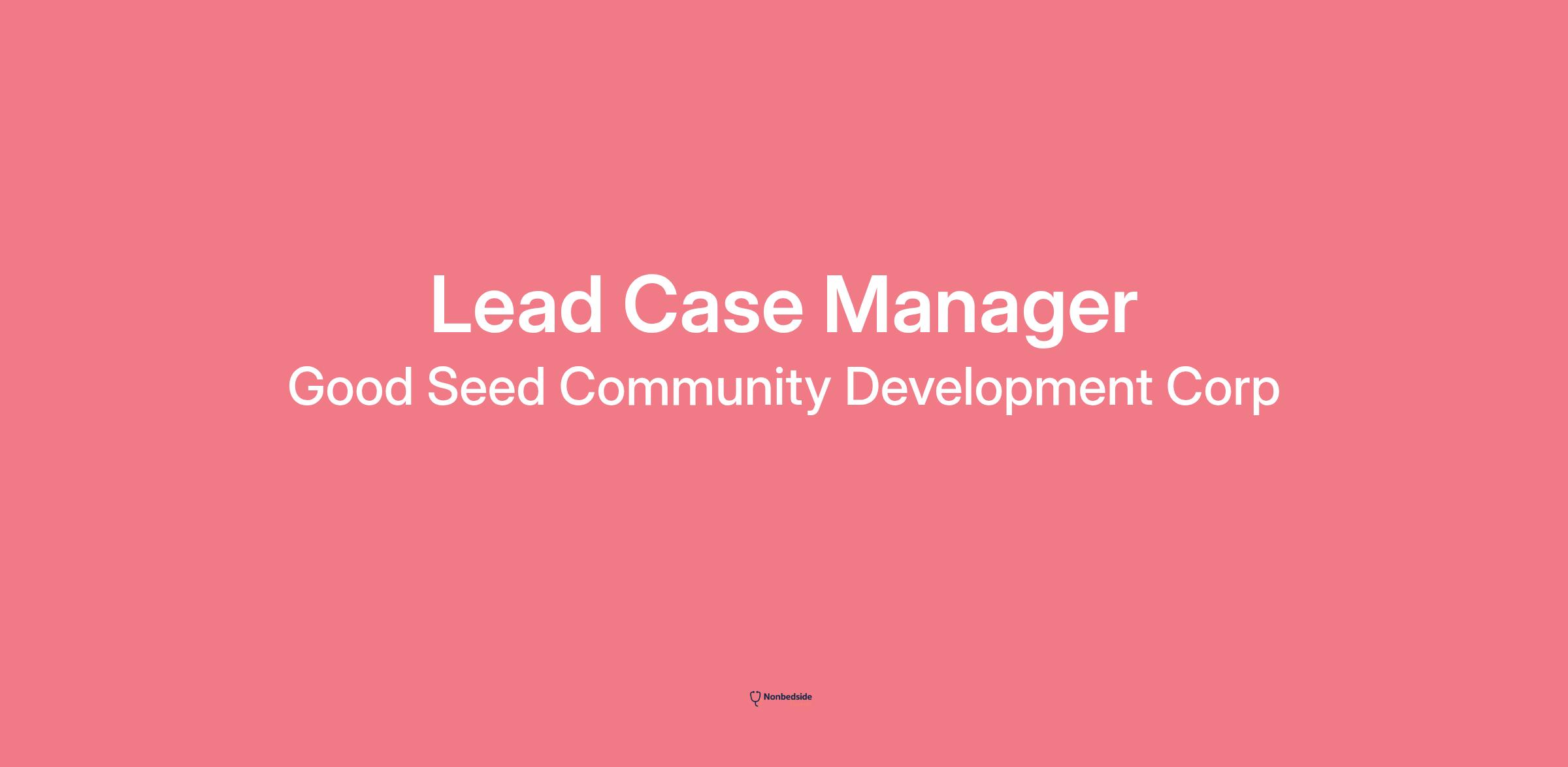 Job Description The Good Seed is looking for a Lead Case Manager to join our dynamic team! The primary function of this position is client centered case management, support, engagement, and document facilitation. The ideal candidate will be a passionate quick-learner, who thrives in fast-paced work environments and possesses the ability to maneuver through challenges with a creative spirit. The Lead Case Manager will have general oversight and coordination of other case management. The Good Seed is a growing non-profit organization where there is growth potential. We are passionate and enthusiastic about the work that we do. If you have a can-do, roll-up your sleeves attitude, you will fit right in!