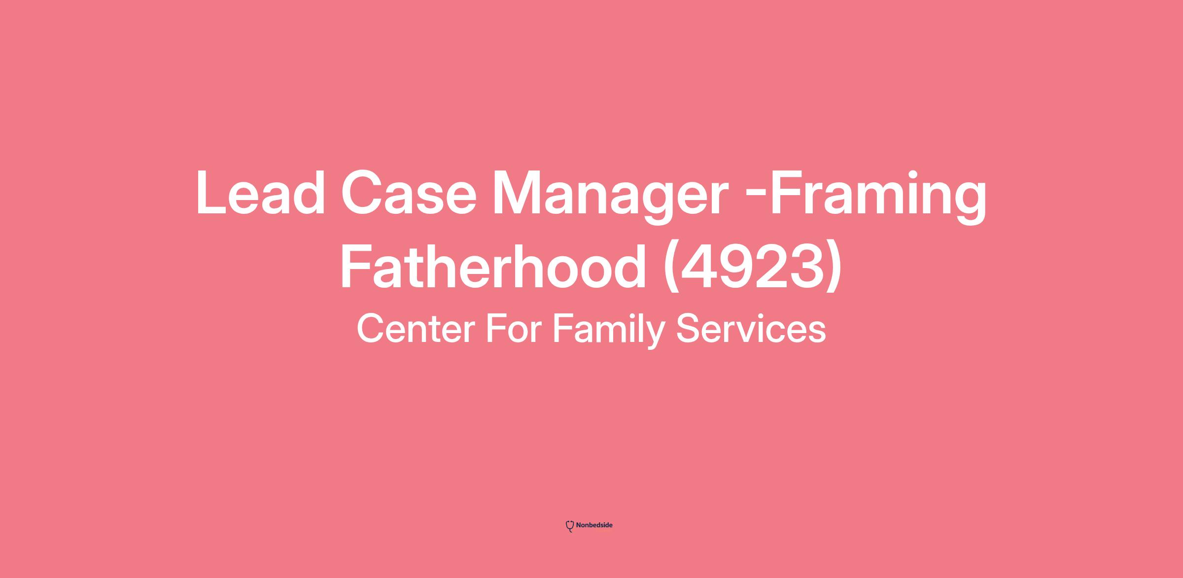 Lead Case Manager -Framing Fatherhood (4923)*Sign-On BonusTake advantage of our new sign-on bonus! Center for Family Services is a place where you can be part of a dynamic, top workplace team dedicated to improving lives. When you apply and get hired, you are eligible for a $500 sign-on bonus.POSITION SUMMARY:The Framing Fatherhood Lead Case Manager will supervise three Case Managers and reports to the Framing Fatherhood Program Director. The Lead Case Manager will be responsible for administering direct service interventions for program participants. Services will be delivered in accordance with program policies. The Lead Case Manager will deliver intensive case management services via a one-on-one, trauma-informed, strengths-based service delivery model. Responsibilities also include screening participants for risk factors, identification of employment challenges and subsequent training and resource needs; general career counseling; tracking of participant data; referrals to supportive services and counseling; and ensuring success in overcoming challenges to achieve program goals. This highly visible leader will be adept at relationship building, program development, and embodies the fatherhood qualities that are representative of the passion, warmth, vision, intensity and love all fathers have for their families.