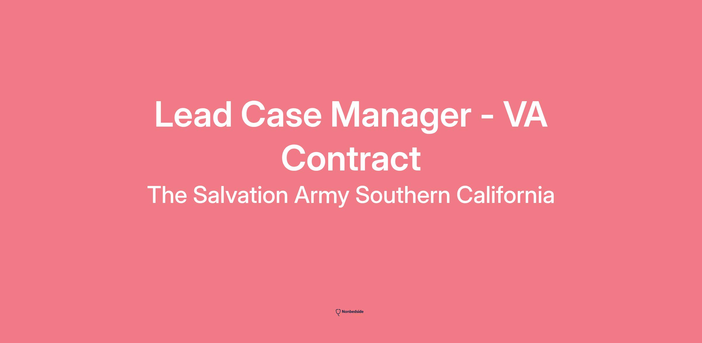 Join to apply for the Lead Case Manager - VA Contract role at The Salvation Army Southern California