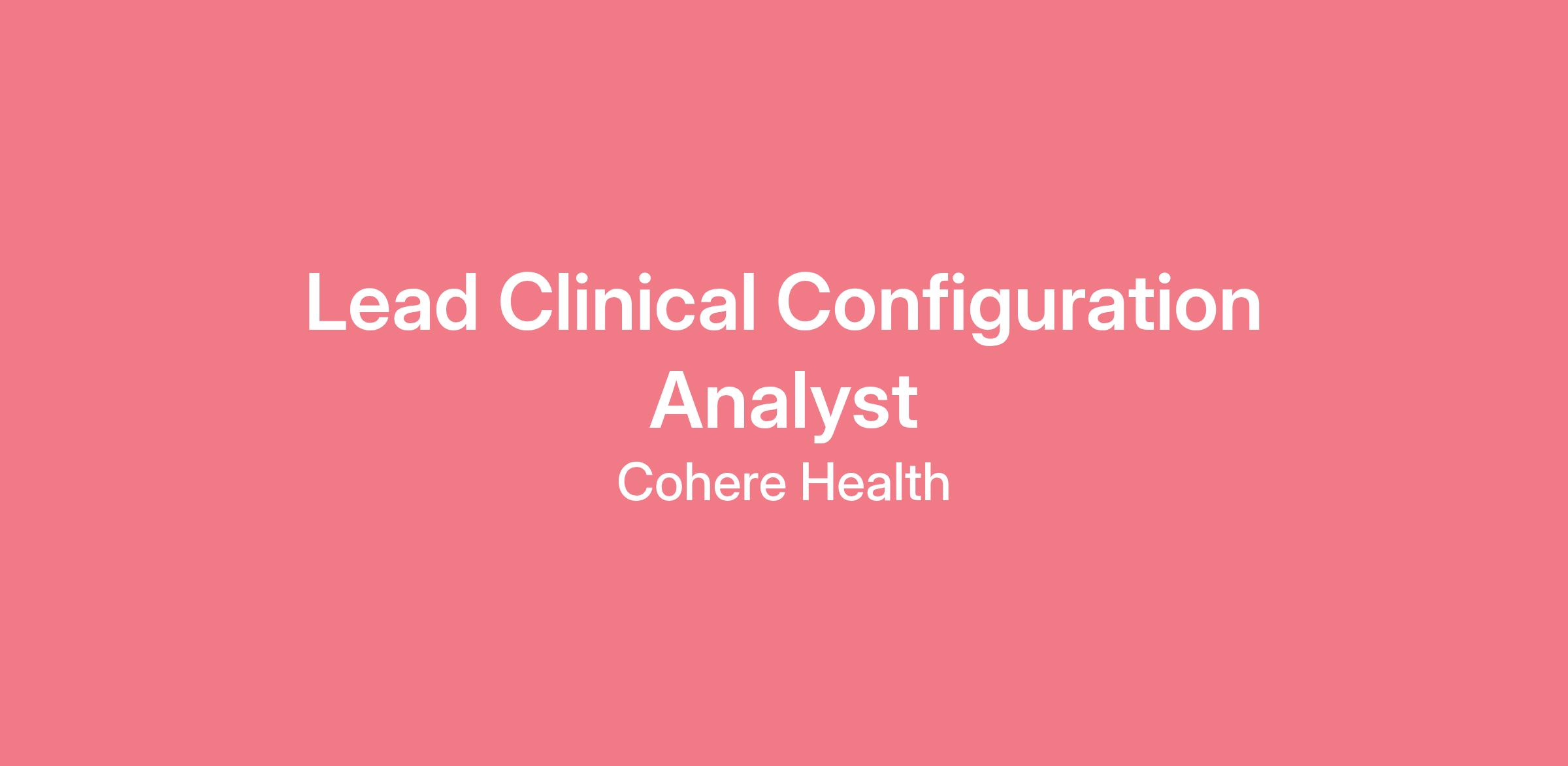 We are looking for a Lead Clinical Configuration Analyst to play a key role in the technical configuration of platform requirements for Cohere’s Platform-as-a-Service (PaaS) clients. Reporting into our Senior Manager, PaaS Value Delivery, you will be part of a small, fast-paced team working directly with client-facing team members to understand and deliver key clinical configurations that are integral to helping new and existing clients meet their prior authorization automation goals. Ultimately, the work you do will have a direct impact on the growth of the company and our ability to assist more patients at a time in their healthcare journey when they need help most.