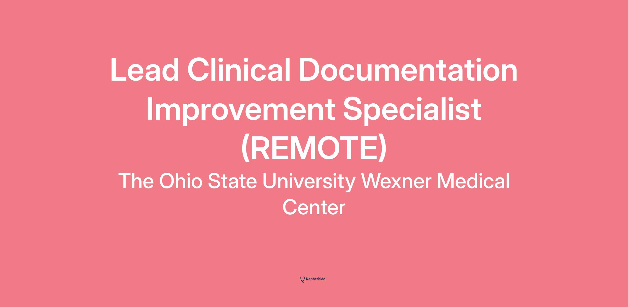 Lead Clinical Documentation Improvement Specialist (REMOTE) Join to apply for the Lead Clinical Documentation Improvement Specialist (REMOTE) role at The Ohio State University Wexner Medical Center