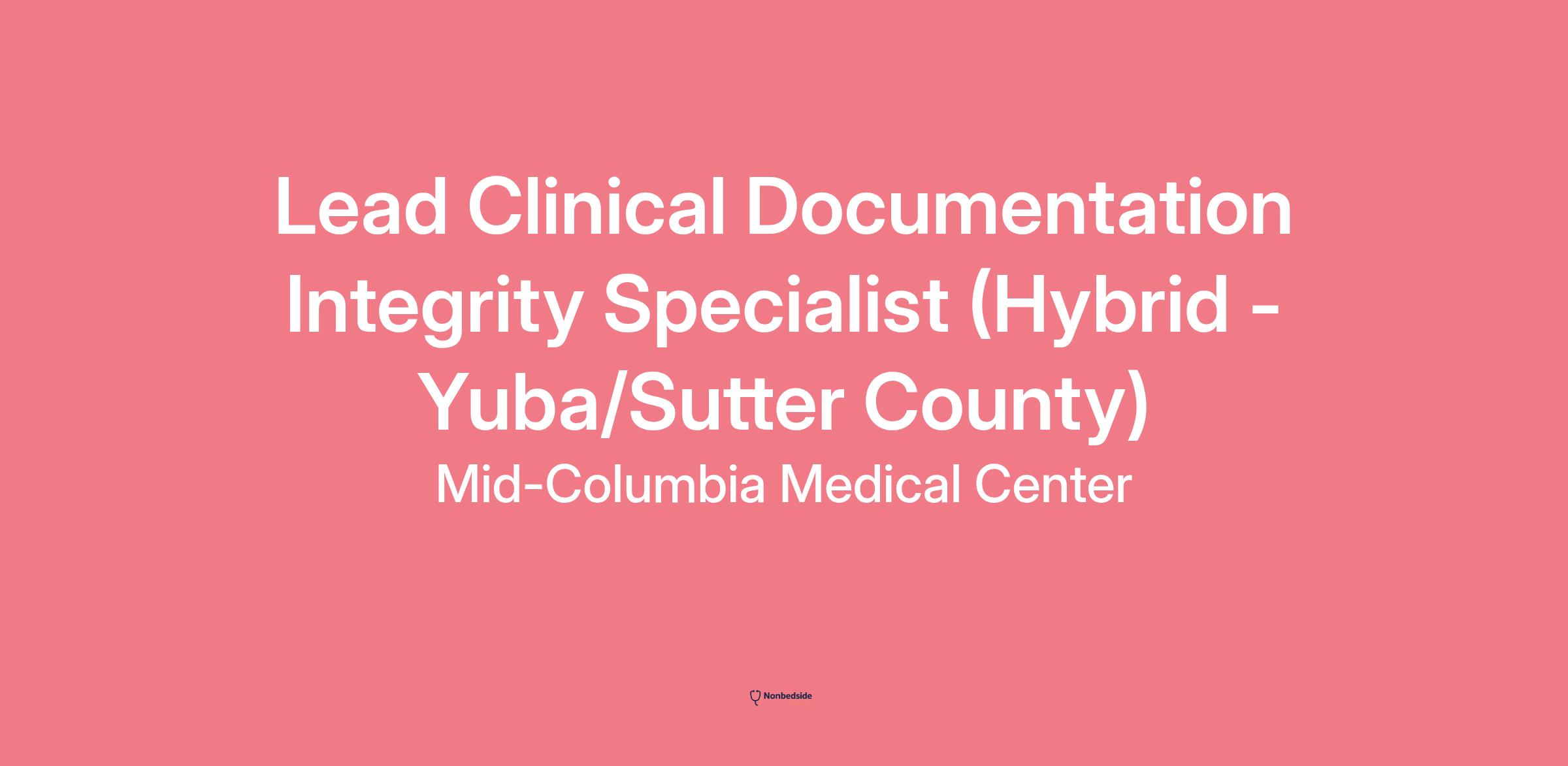 Lead Clinical Documentation Integrity Specialist (Hybrid - Yuba/Sutter County)