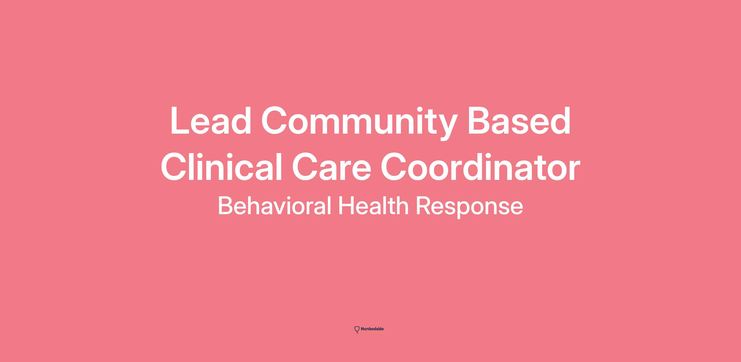 BHR is seeking a Lead Community Based - Clinical Care Coordinator (CB-CCC) to guide and support our follow‑up care team in the coordination of behavioral health services for our clients. In addition to managing your own caseload, you will work closely with your team to provide case consultations and ensure every client receives the appropriate care program to help them achieve an improved level of functioning post‑crisis. You will be expected to track and report case productivity per team member, attend and/or lead various meetings, train team members on policies and procedures, and coordinate and oversee monthly account clean up.