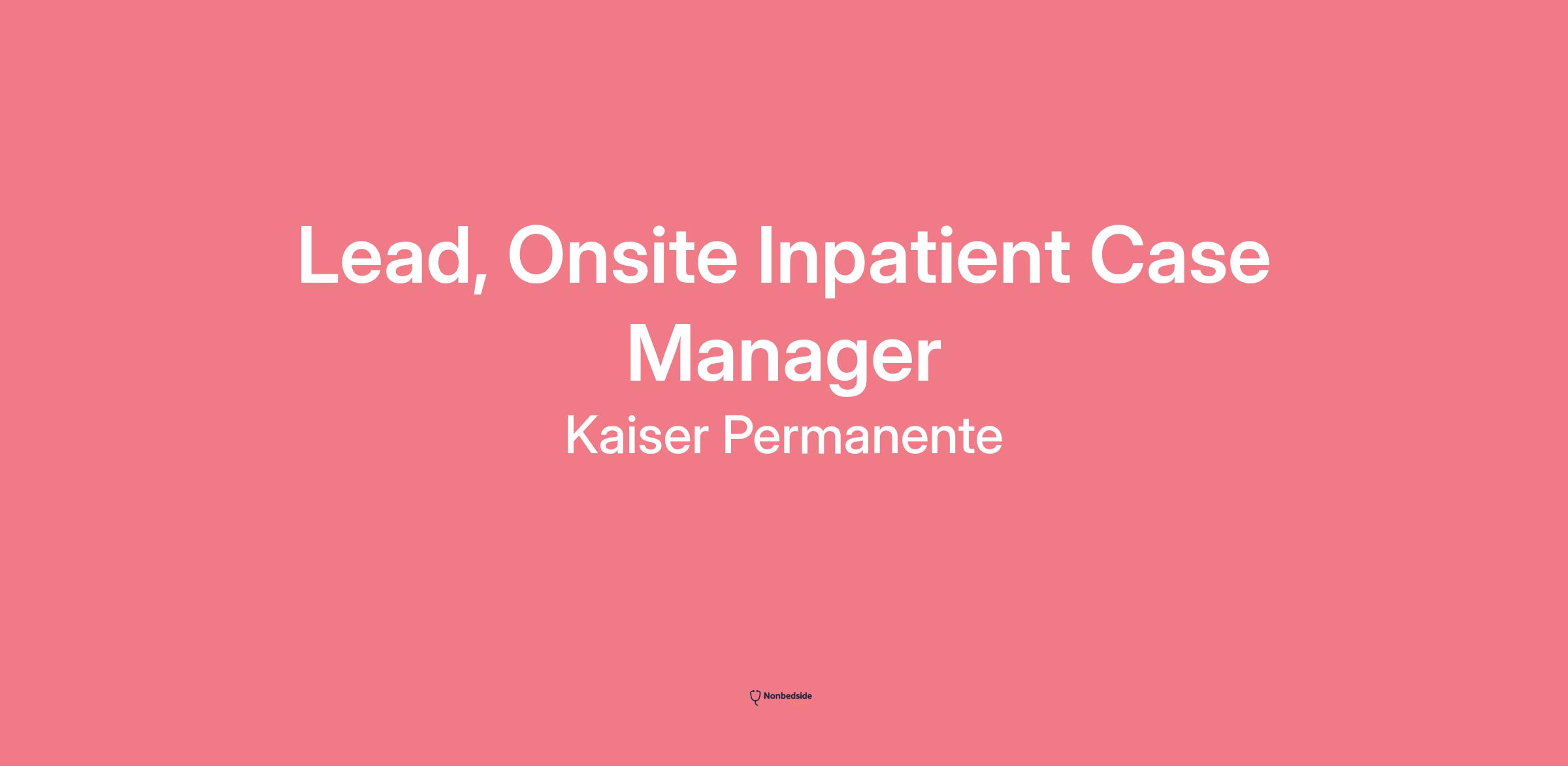 The Lead Onsite Inpatient Case Manager assists the Managers and Director in managing the overall operations of the Inpatient case management department for Kaiser Permanente Core Facilities in accordance with current Federal and State regulations and guidelines. The Lead Onsite Inpatient Case Manager works in collaboration with the Managers, Director, and Sr. Director of Inpatient Case Management to manage and implement the strategic plan for the Inpatient Case Management department as assigned. The Lead Onsite Inpatient Case Manager collaborates with the Hospitalists and CWD physician leaders. The Lead Onsite Inpatient Case Manager reports to the Manager of Inpatient Case Management. The Lead Onsite Inpatient Case Manager has frequent contact with the support staff, QRM staff, CWD physicians, Hospitalists, Core staff, Directors, Sr. Directors, contracted providers and community resources as well as contact with patients/families.