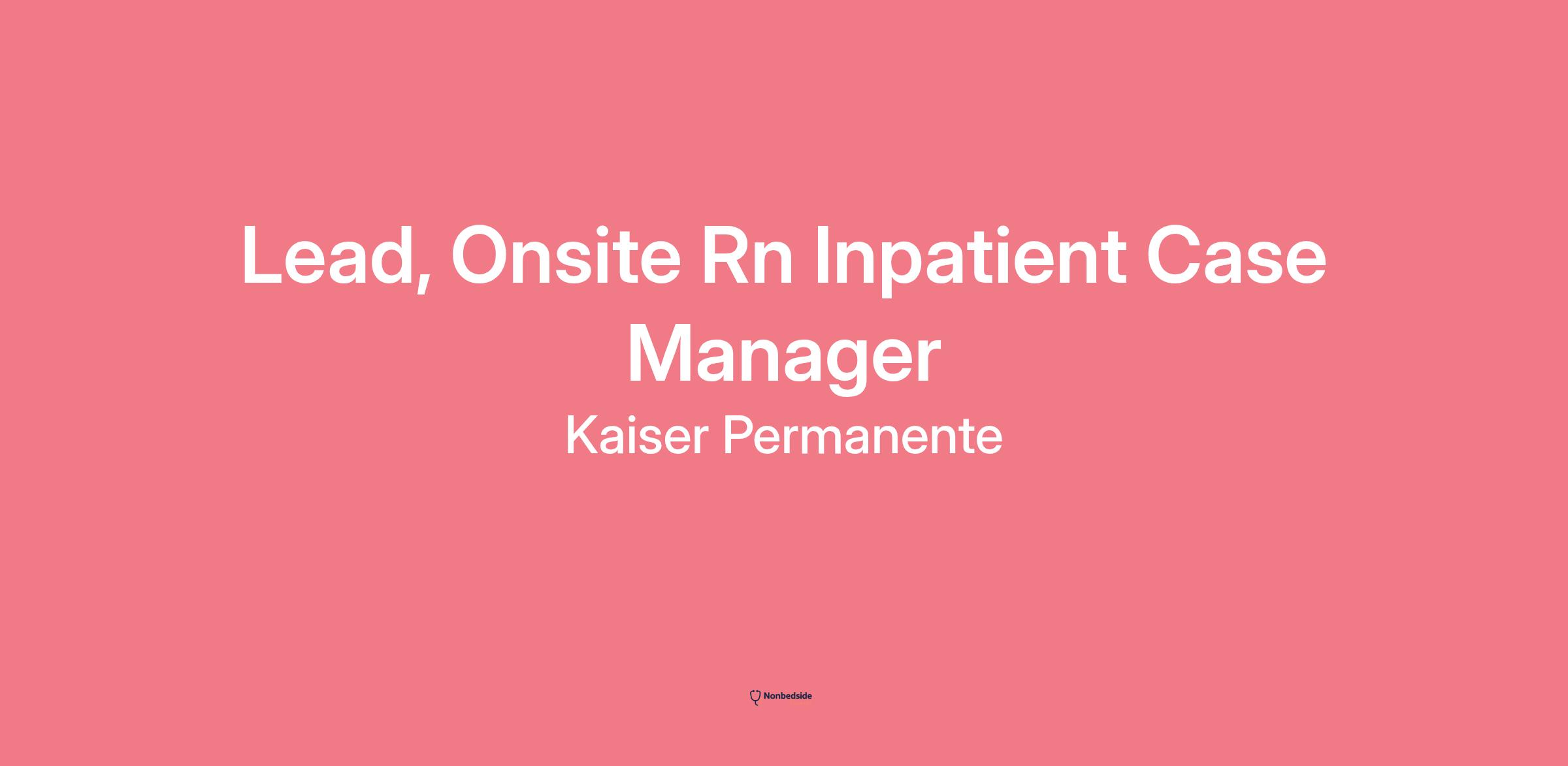 Overview The Lead Onsight Inpatient Case Manager assists the Managers and Director in managing the overall operations of the Inpatient case management department for Kaiser Permanente Core Facilities in accordance with current Federal and State regulations and guidelines. The Lead Onsight Inpatient Case Manager works in collaboration with the Managers, Director, and Sr. Director of Inpatient Case Management to manage and implement the strategic plan for the Inpatient Case Management department as assigned. The Lead Onsight Inpatient Case Manager collaborates with the Hospitalists and CWD physician leaders. The Lead Onsight Inpatient Case Manager reports to the Manager of Inpatient Case Management. The Lead Onsight Inpatient Case Manager has frequent contact with the support staff, QRM staff, CWD physicians, Hospitalists, Core staff, Directors, Sr. Directors, contracted providers and community resources as well as contact with patients/families.