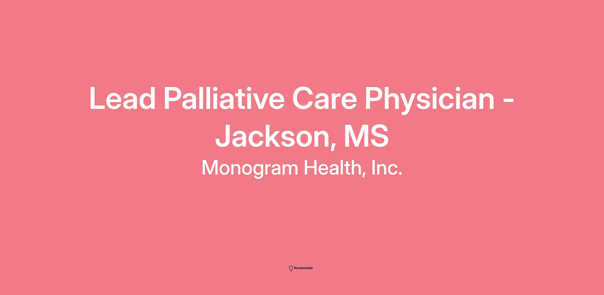 Lead Palliative Care Physician - Jackson, MS Job Category: Clinical