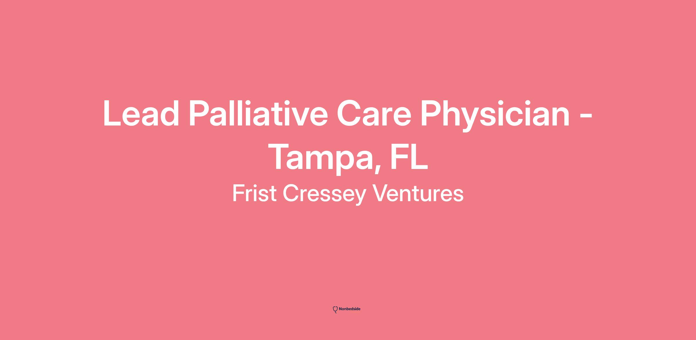 Lead Palliative Care Physician - Tampa, FL Monogram Health is seeking a full-time physician, specialized in palliative care, to join the team due to continued nationwide growth.This physician will be an in-market specialist and care for the seriously ill population in their community, including patients with CKD/ESRD, COPD, and CHF. The Lead Palliative Care physician will be integrated into their local market with the Market Physician Executive (MPE) and primarily renders care in the home.