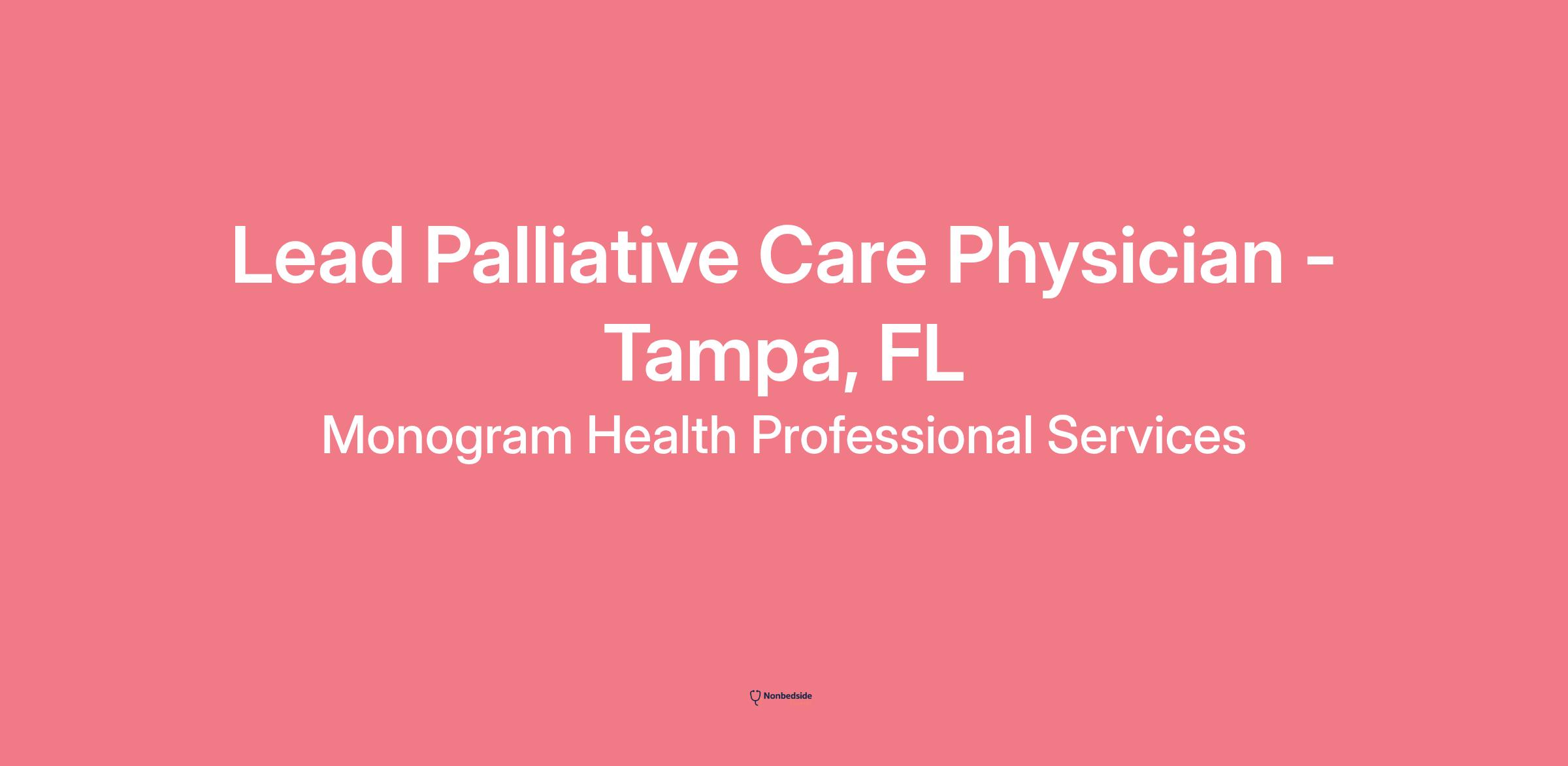 Monogram Health is seeking a full-time physician, specialized in palliative care, to join the team due to continued nationwide growth. This physician will be an in-market specialist and care for the seriously ill population in their community, including patients with CKD/ESRD, COPD, and CHF. The Lead Palliative Care physician will be integrated into their local market with the Market Physician Executive (MPE) and primarily renders care in the home.