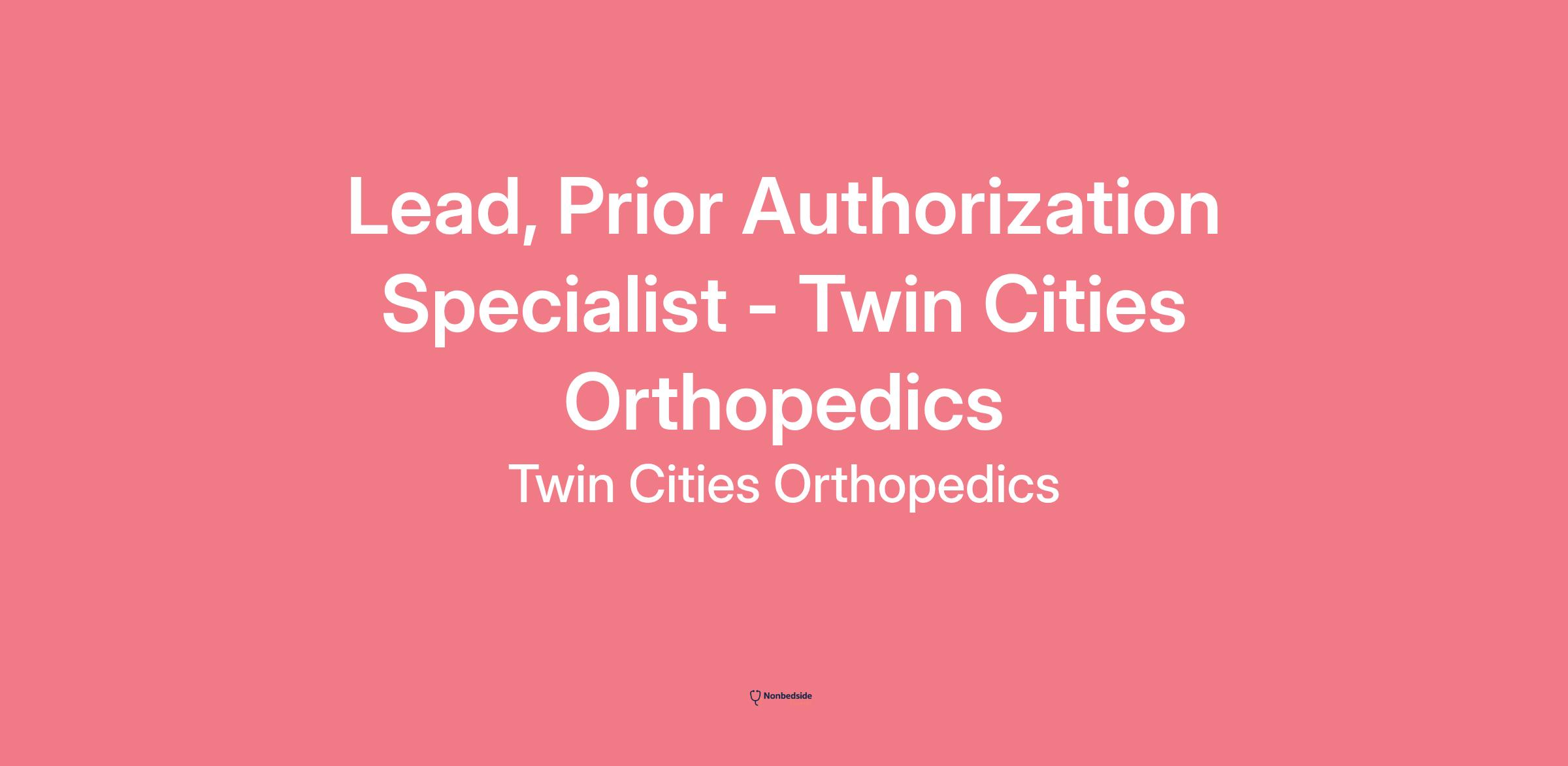 Lead, Prior Authorization Specialist - Twin Cities Orthopedics Job Category: Patient Services
