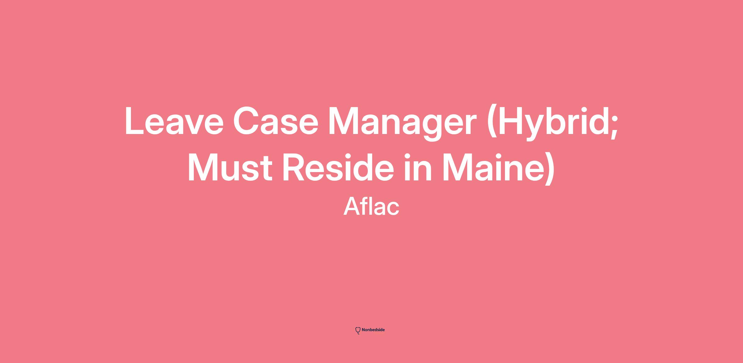 Overview Leave Case Manager (Hybrid; Must Reside in Maine) – Join to apply for the Leave Case Manager (Hybrid; Must Reside in Maine) role at Aflac.