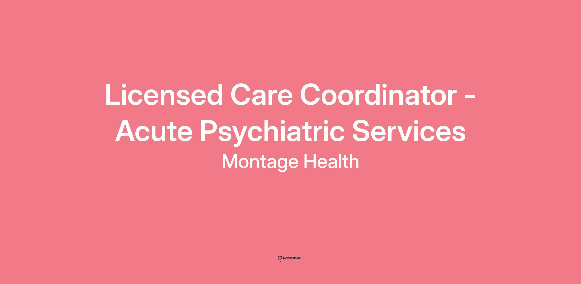 Licensed Care Coordinator - Acute Psychiatric Services Join to apply for the Licensed Care Coordinator - Acute Psychiatric Services role at Montage Health .