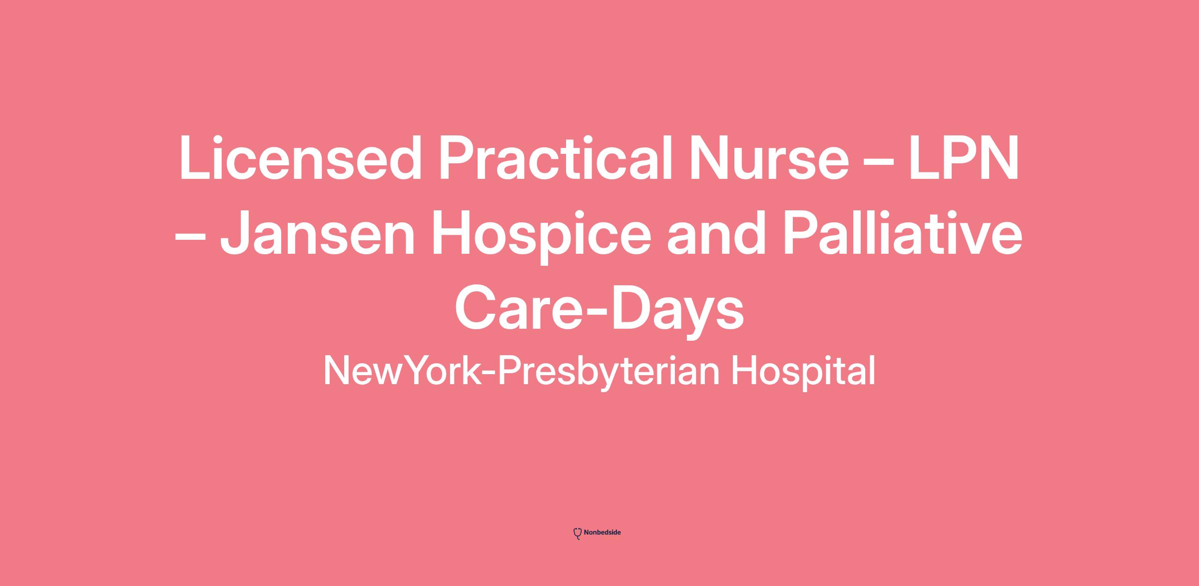 Licensed Practical Nurse – LPN – Jansen Hospice and Palliative Care-Days