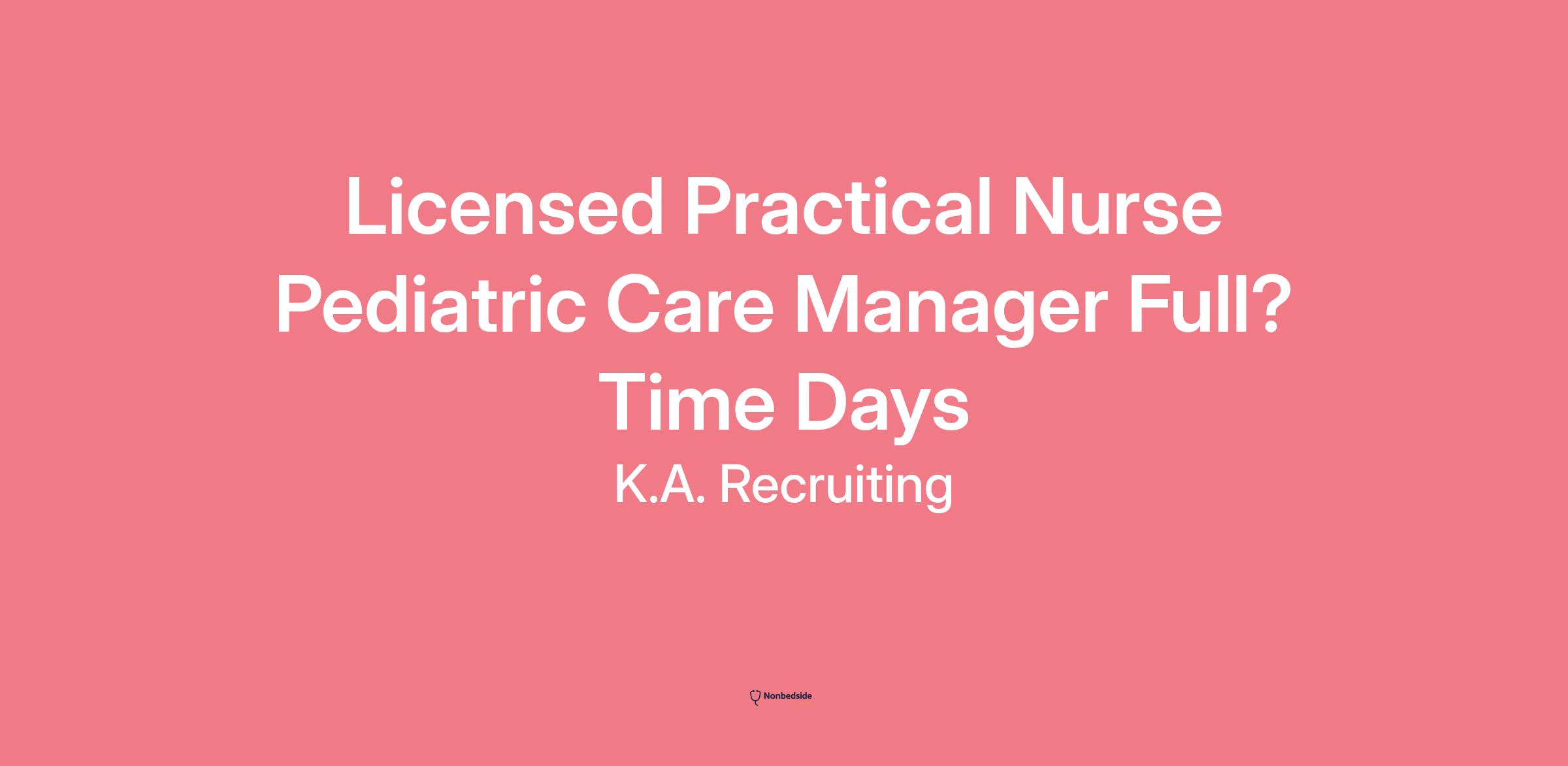 Join a community-driven pediatric care team as an LPN Care Manager, where you'll coordinate and oversee holistic care for children and families. In this role, you'll serve as a vital link between providers, patients, and community resourcesdelivering clinical support, care coordination, and health education in a nurturing outpatient setting.