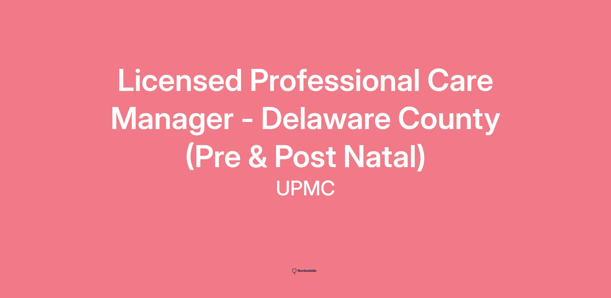 UPMC Community Care Behavioral Health is hiring a full-time Licensed Professional Care Manager to support the Care Management team in Delaware County. This role will work standard daylight hours Monday Friday. This position will work in a hybrid structure with the majority of the time spent traveling throughout Delaware and surrounding counties and working in the office in Media, PA, and minimal opportunity to work from home. Mileage reimbursement is provided at the IRS rate. This position will primarily be working with pre- and post-natal care.