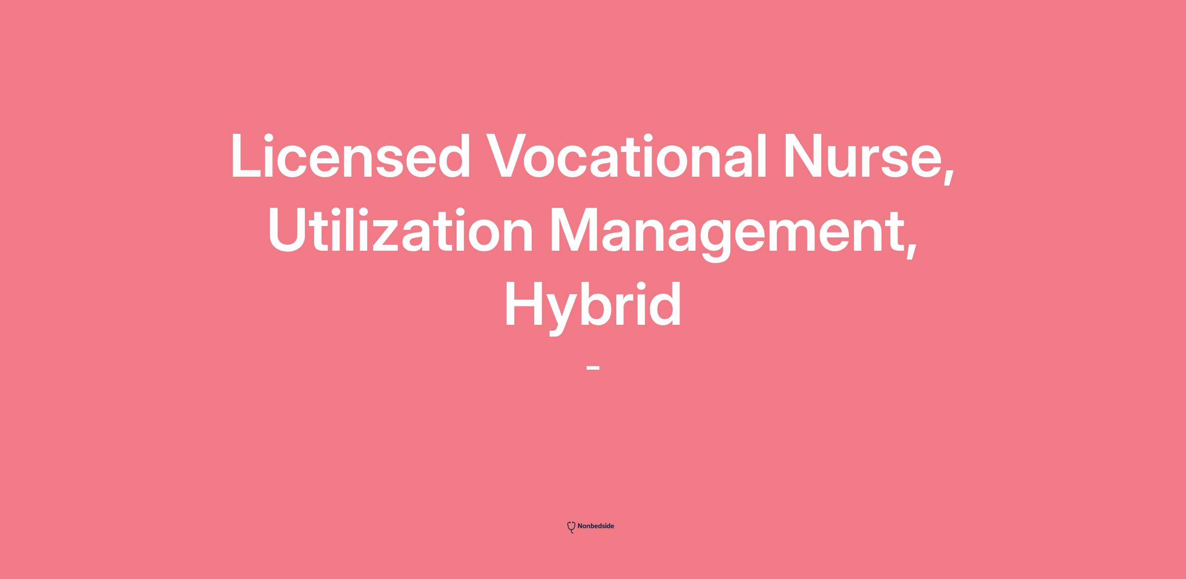 Licensed Vocational Nurse, Utilization Management, Hybrid