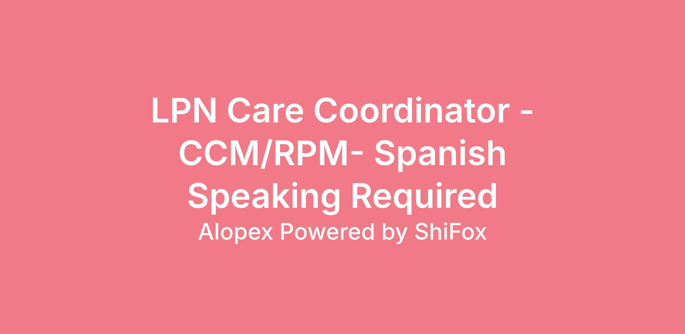Job Description: As an LPN Care Coordinator, you will play a pivotal role in managing and coordinating care for patients enrolled in Alopex’s services. You will work closely with patients, primary care providers, and other specialists to develop, implement, and monitor individualized care plans. Your goal is to ensure that patients receive the highest level of care through ongoing communication and coordination.