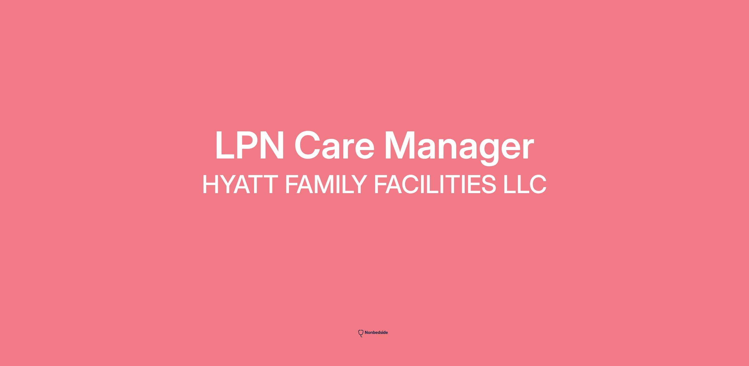 Join to apply for the LPN Care Manager role at HYATT FAMILY FACILITIES LLC .