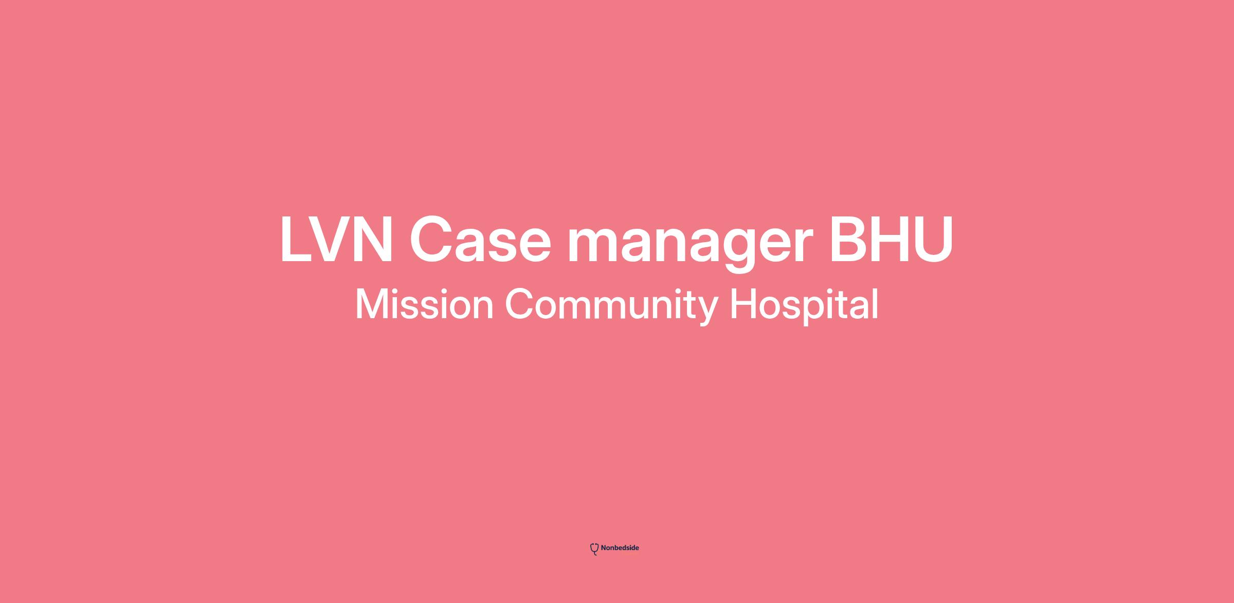 Overview Join to apply for the LVN Case Manager BHU role at Mission Community Hospital.
