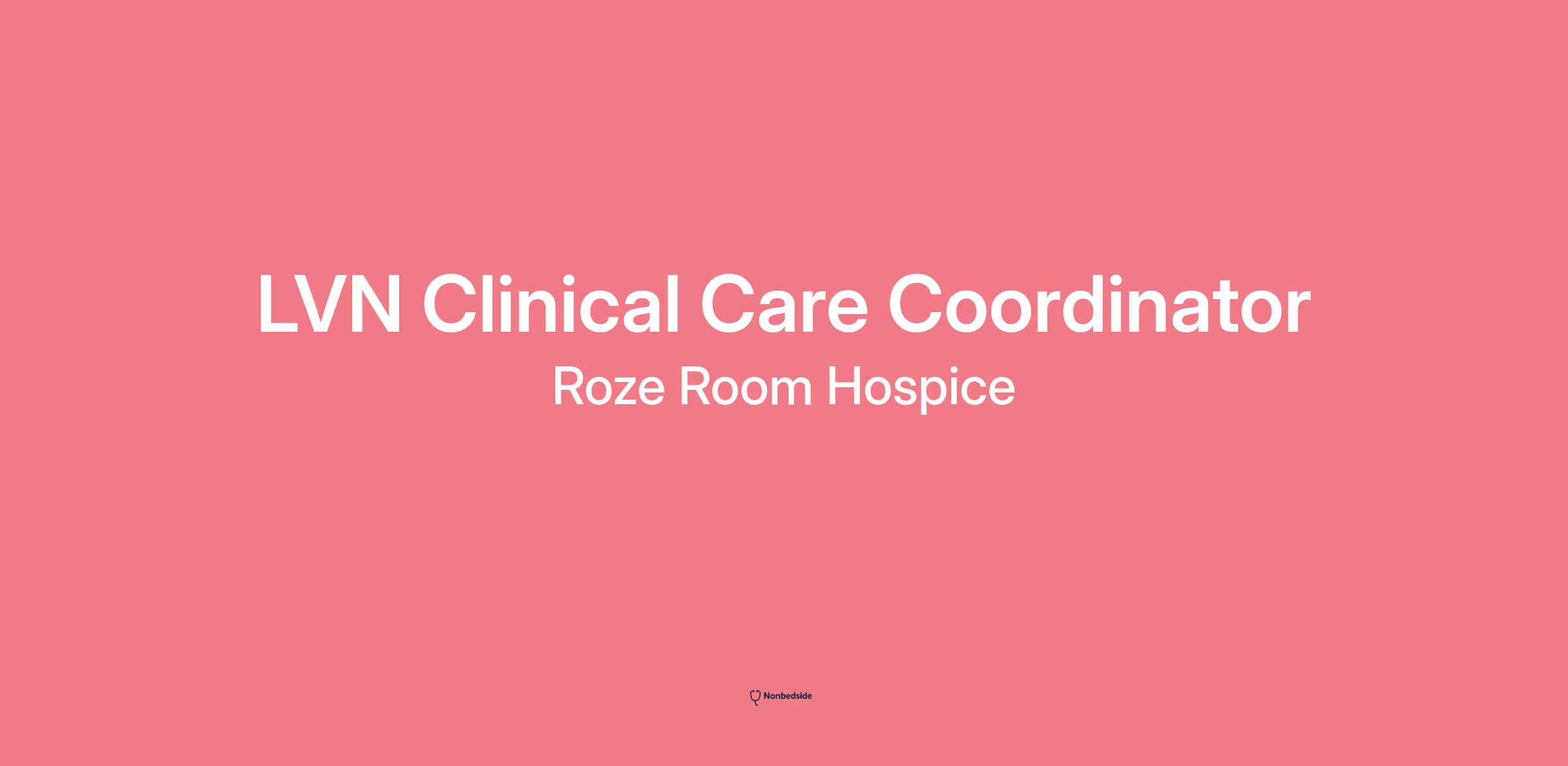 Join to apply for the LVN Clinical Care Coordinator role at Roze Room Hospice .