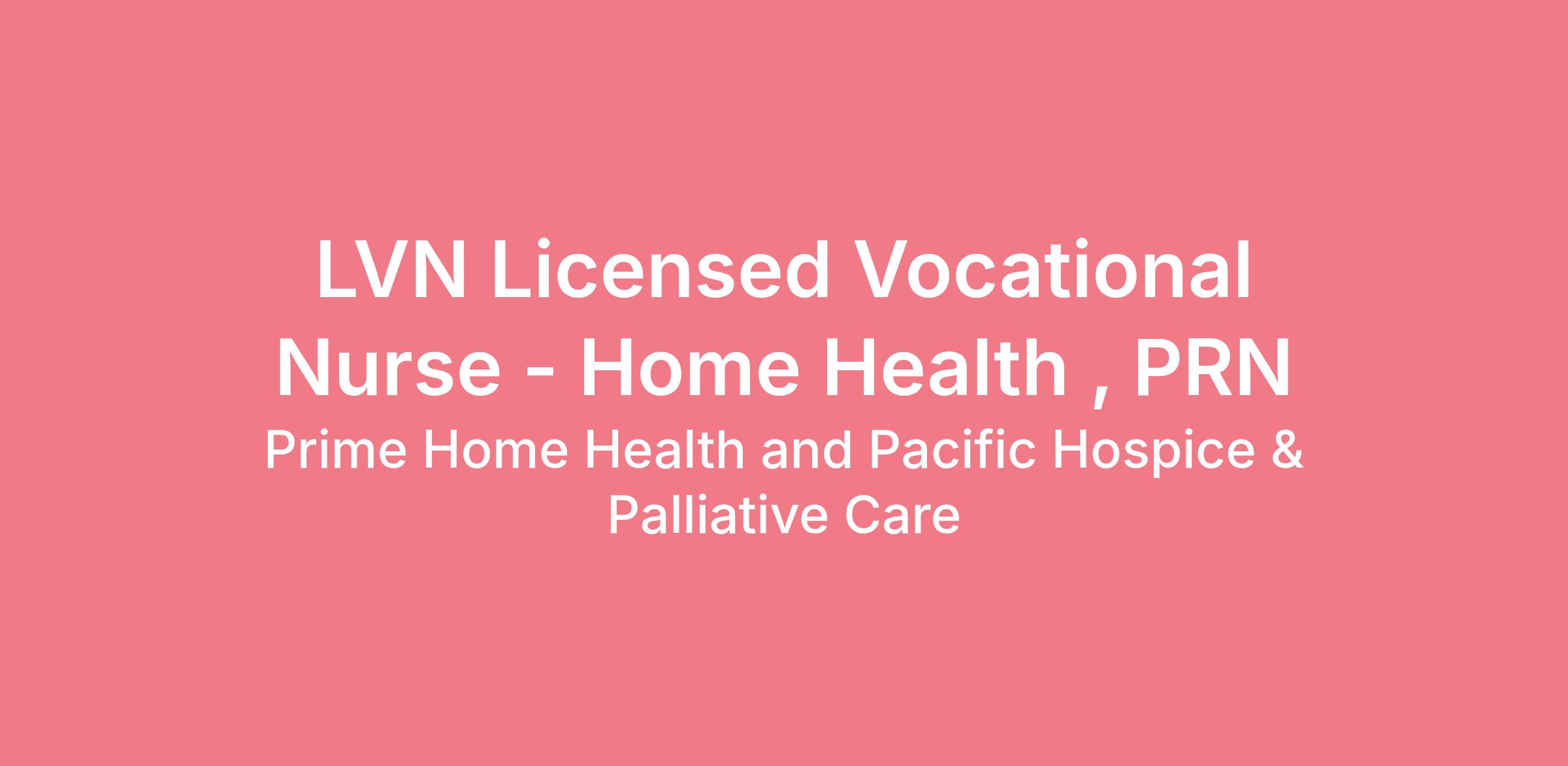 Our LVNs are experienced in adult in-home health nursing. You will be responsible for providing direct patient care under the supervision of a Registered Nurse. Responsibilities include following the plan of care, providing treatments, and working collaboratively with the members of the team to help meet positive patient care outcomes. We ask our fulltime staff to participate in the on-call rotation monthly which might include evenings, weekends and holidays as needed. Prime Home Health can provide you with a professional, experienced, supportive administrative team.
