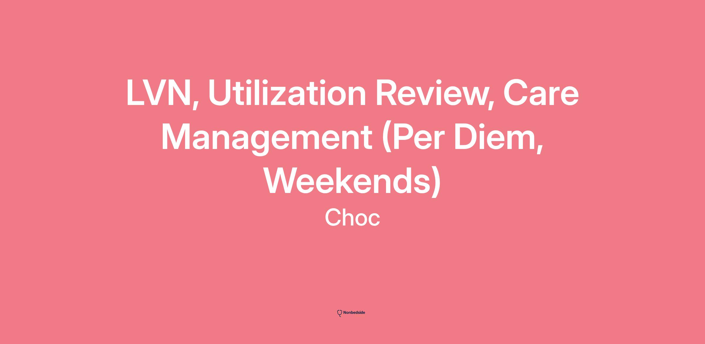 CHOC's Care Management team is looking for an experienced Utilization Review LVN to cover weekends (Sat/Sun) 8am-5pm. Additional hours during the week (8am-4:30pm) may be available/requested. Our Per Diem Associates will also need to cover some holidays. The Utilization Review Representative is responsible for utilization review of all inpatient and outpatient statuses. This individual is also responsible for the daily processing of internal and external authorization requests with payors for treatments, services, and supplies in collaboration with the RN Care Managers Inpatient and Outpatient. Will assist in the completion of the RN Care Manager's case load as assigned, promoting a positive approach to all activities related to data collection, insurance verification, financial counseling and customer service. This role ensures that the work processed is accurate and complete in all areas of responsibilities. The qualified candidate will have Utilization Review experience in an Acute Care, Sub-Acute/SNF/LTAC, Health Plan or IPA setting.