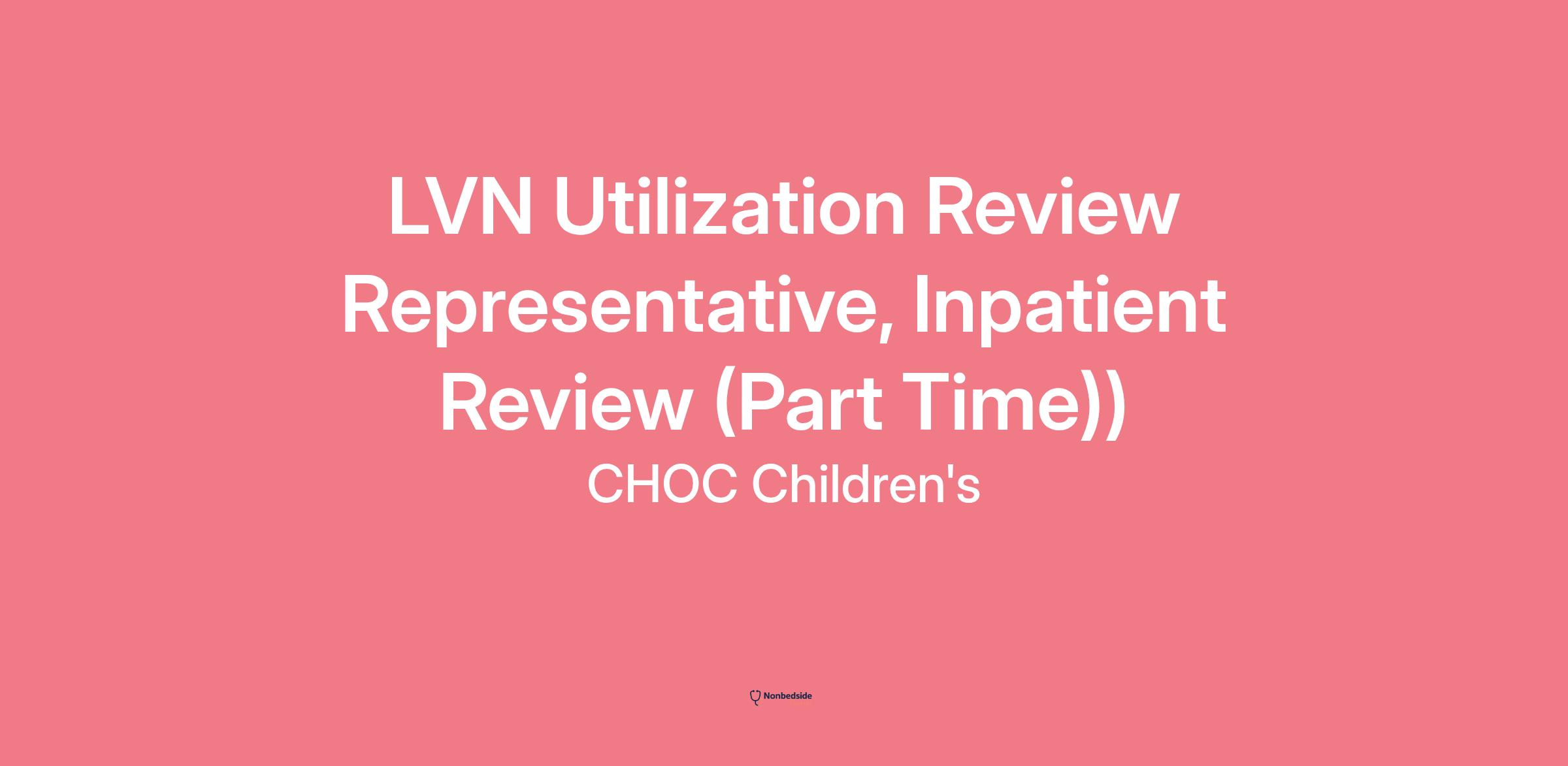 Overview Join to apply for the LVN Utilization Review Representative, Inpatient Review (Part Time) role at CHOC Children's.