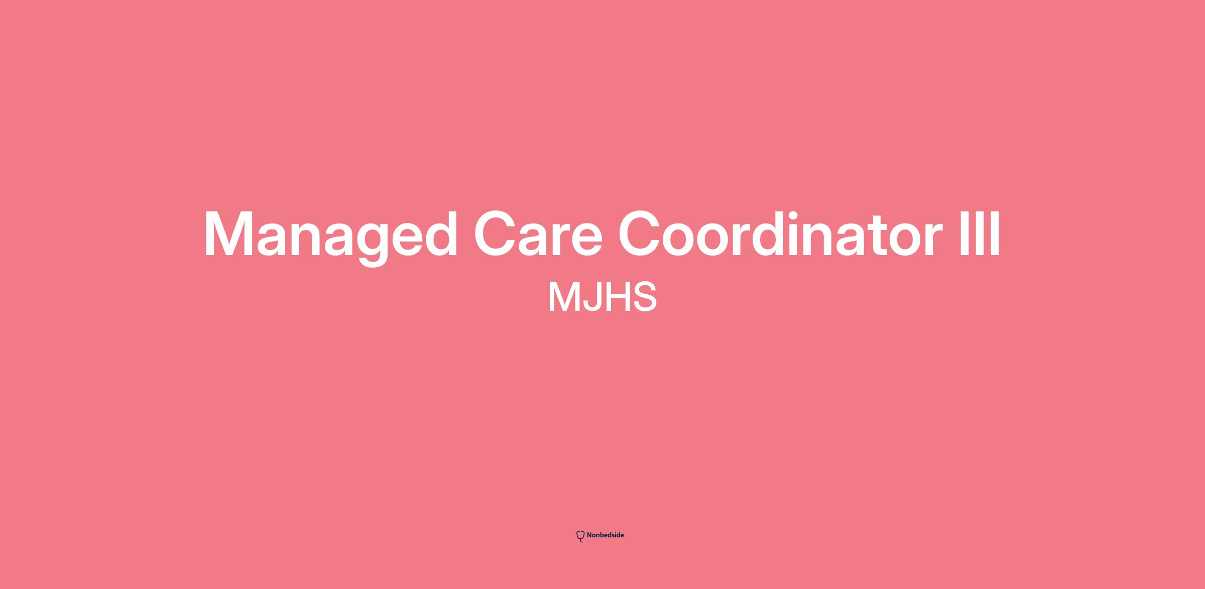 Join to apply for the Managed Care Coordinator III role at MJHS