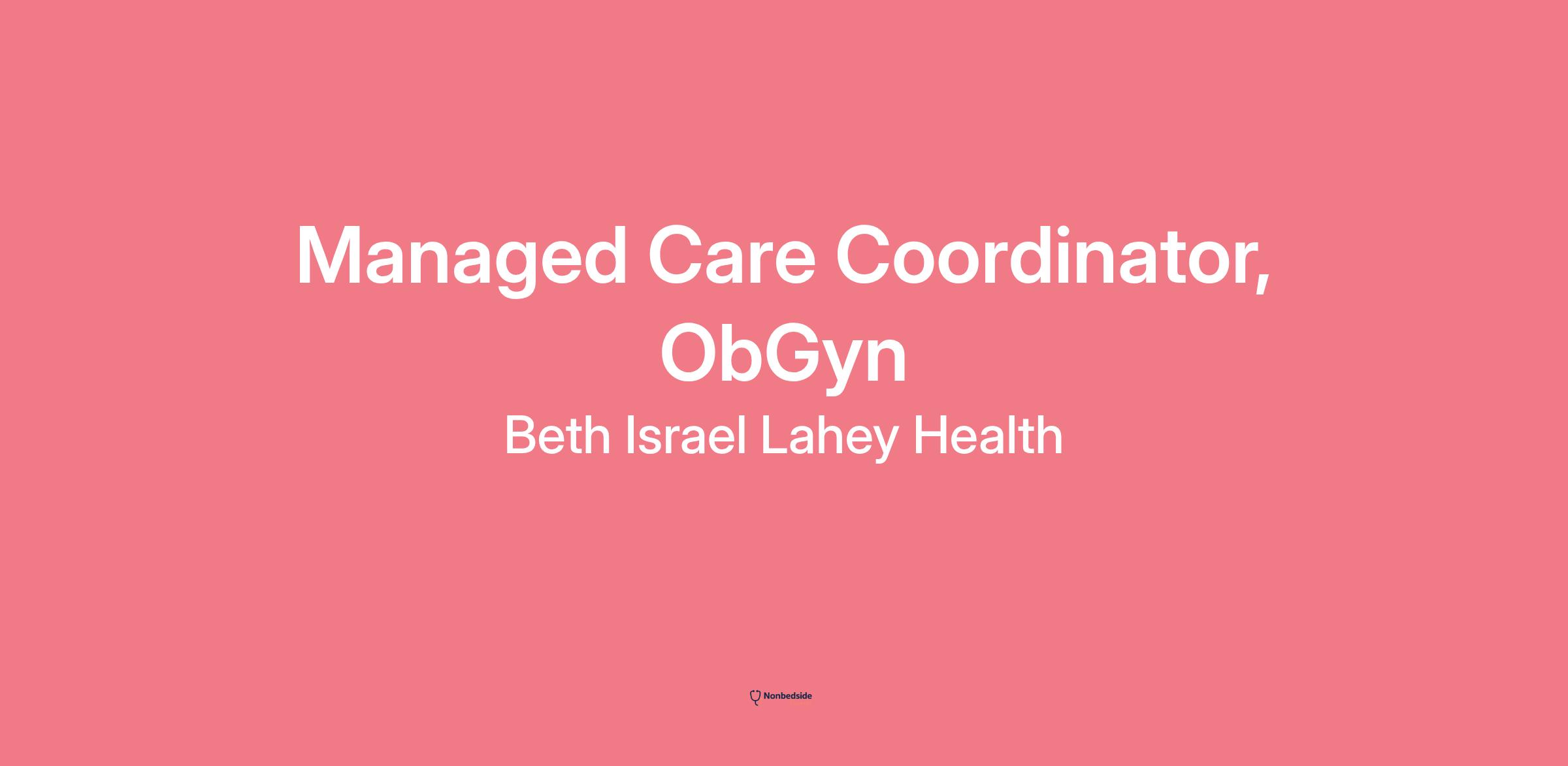 The Managed Care Coordinator will support the ObGyn Department at Beth Israel Deaconess Medical Center in Boston, MA.