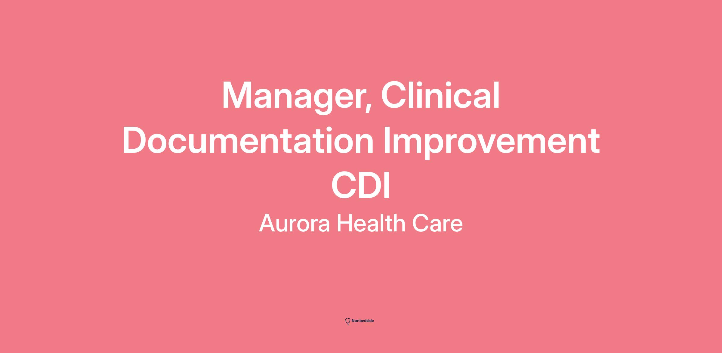 Join to apply for the Manager, Clinical Documentation Improvement CDI role at Aurora Health Care