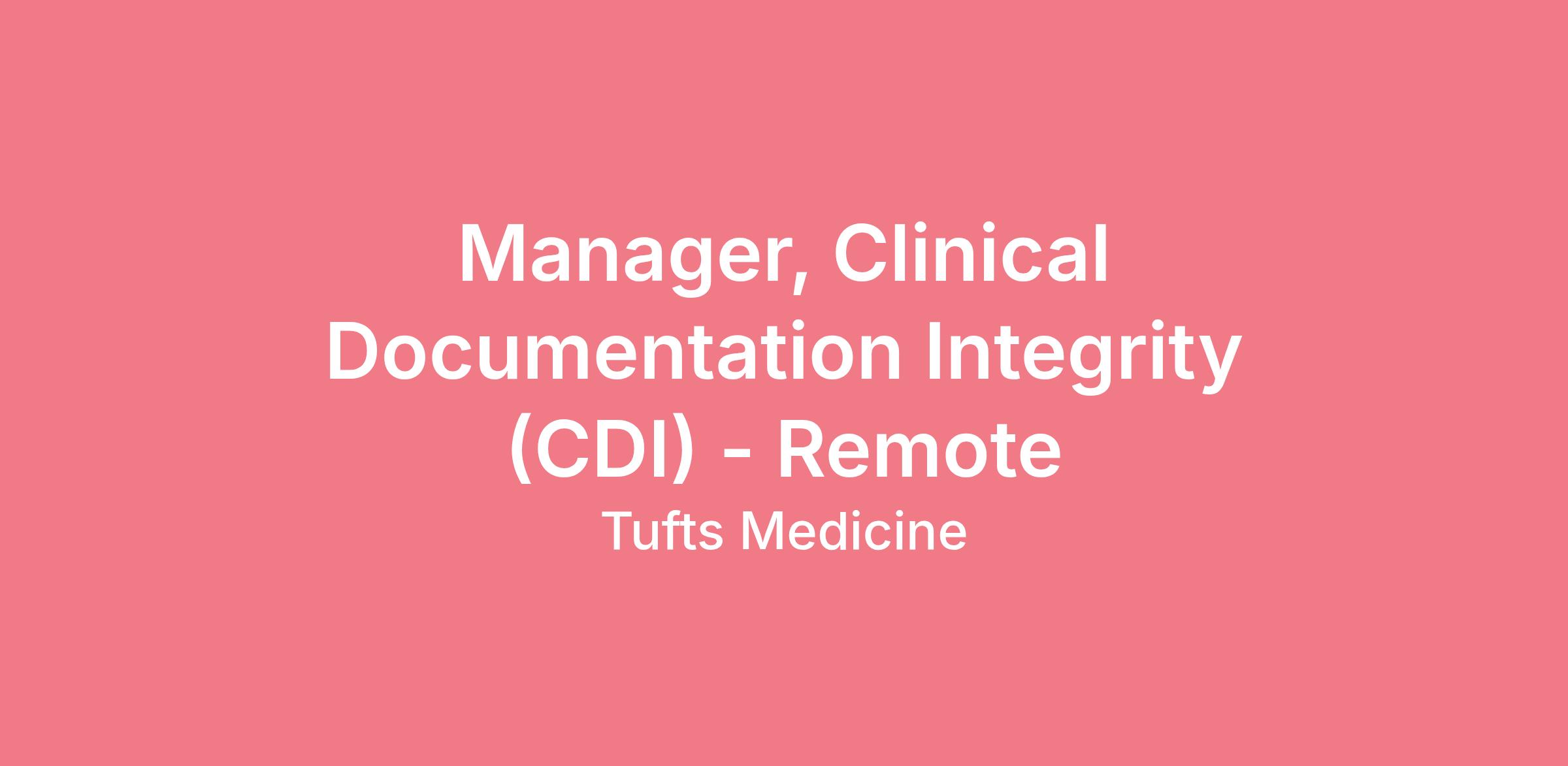 Title: Manager, Clinical Documentation Integrity