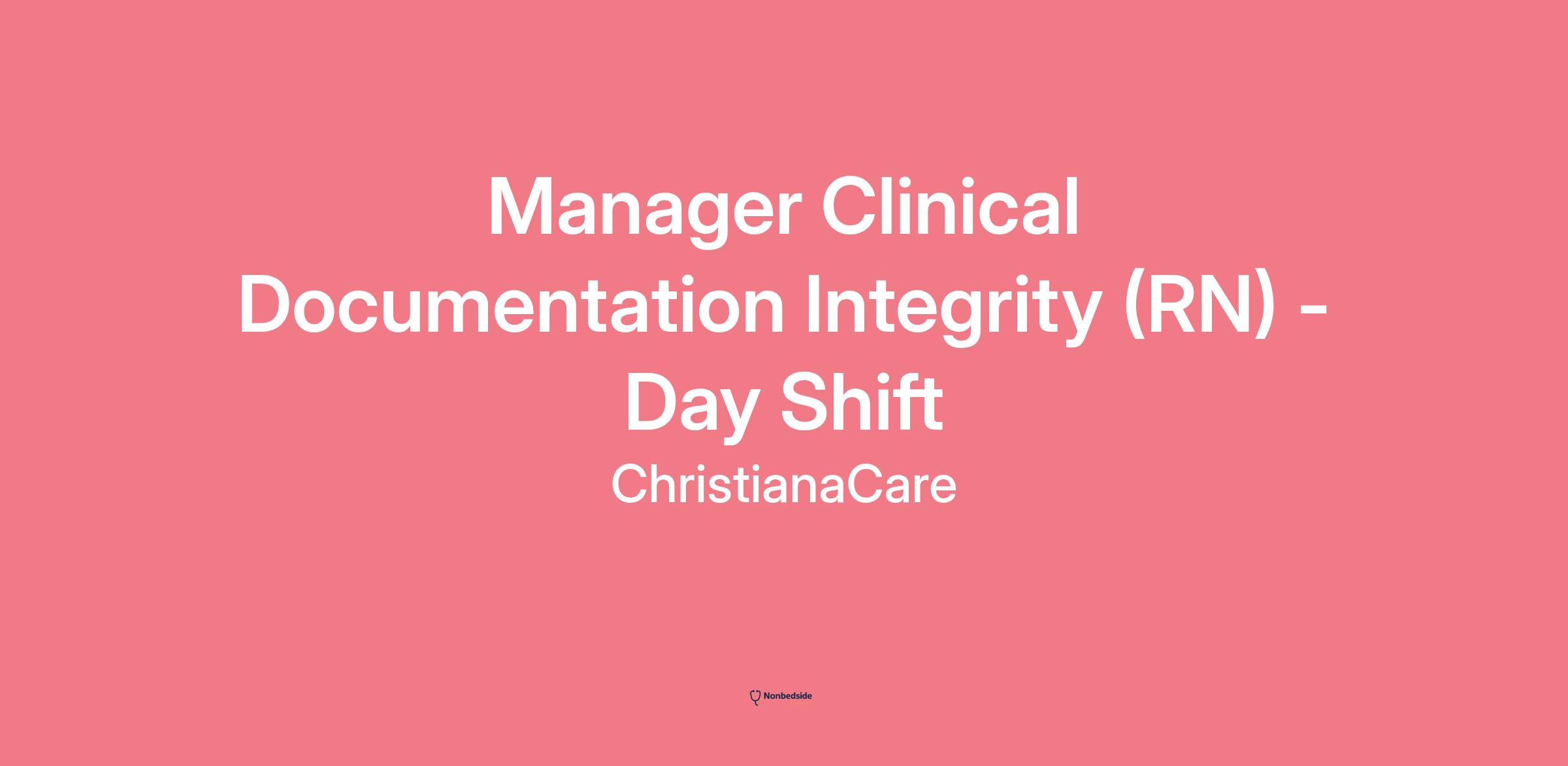 Job DetailsClinical Documentation Manager - Clinical Documentation Integrity (CDI)FT - M-F - Remote Work with On-Site Presence Requirements.Newark, DEChristianaCare Hospital in Newark, DE, is seeking a Clinical Documentation Manager to lead the Clinical Documentation Integrity Team. Candidate must have CDI Management Experience.