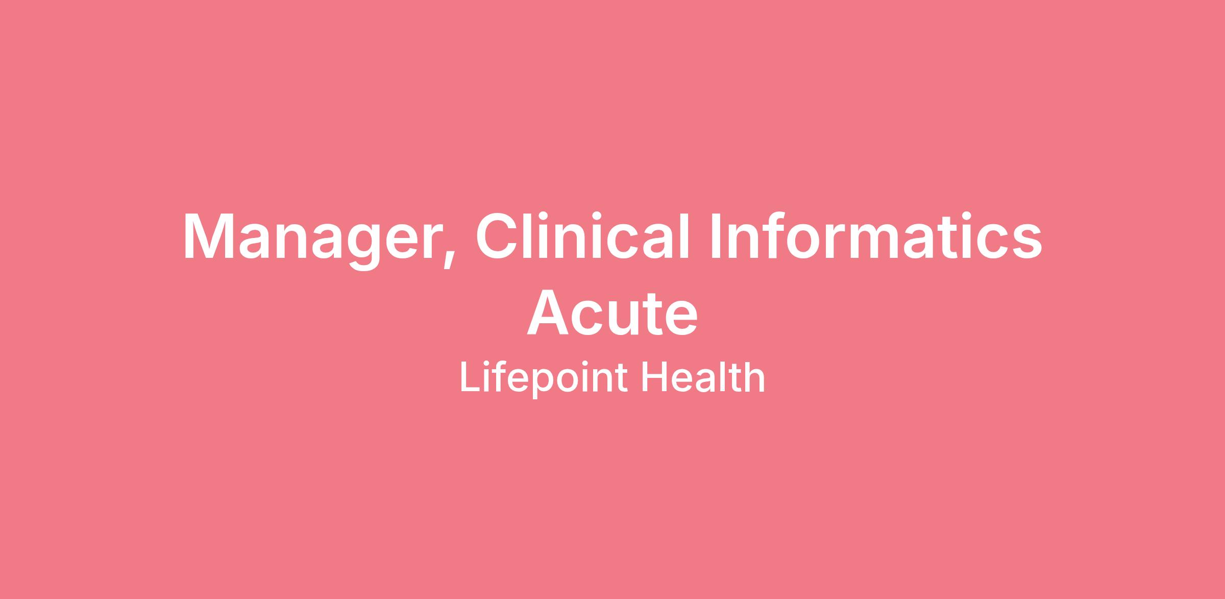 Work closely with the Director of Clinical Informatics and peers to provide core system expertise and assistance as needed to successfully implement patient data automation and work through the system life cycle. - Manage, lead, direct, and provide support to a team which executes the strategy and fosters proactive communication among all stakeholders in clinical technology system deployment and clinical content integration of Lifepoint standard evidence-based content into existing processes, workflow and system related libraries or dictionaries.
