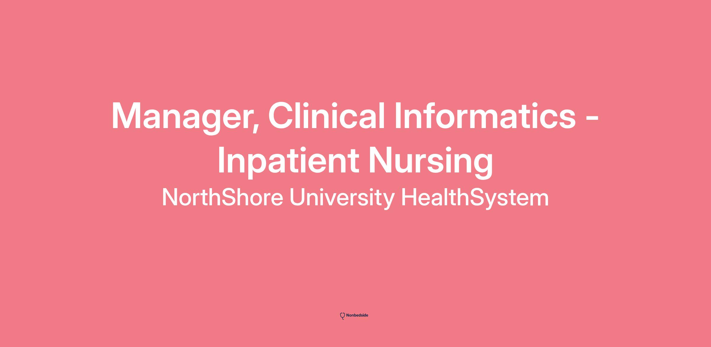 Position: Manager, Clinical Informatics - Inpatient Nursing
