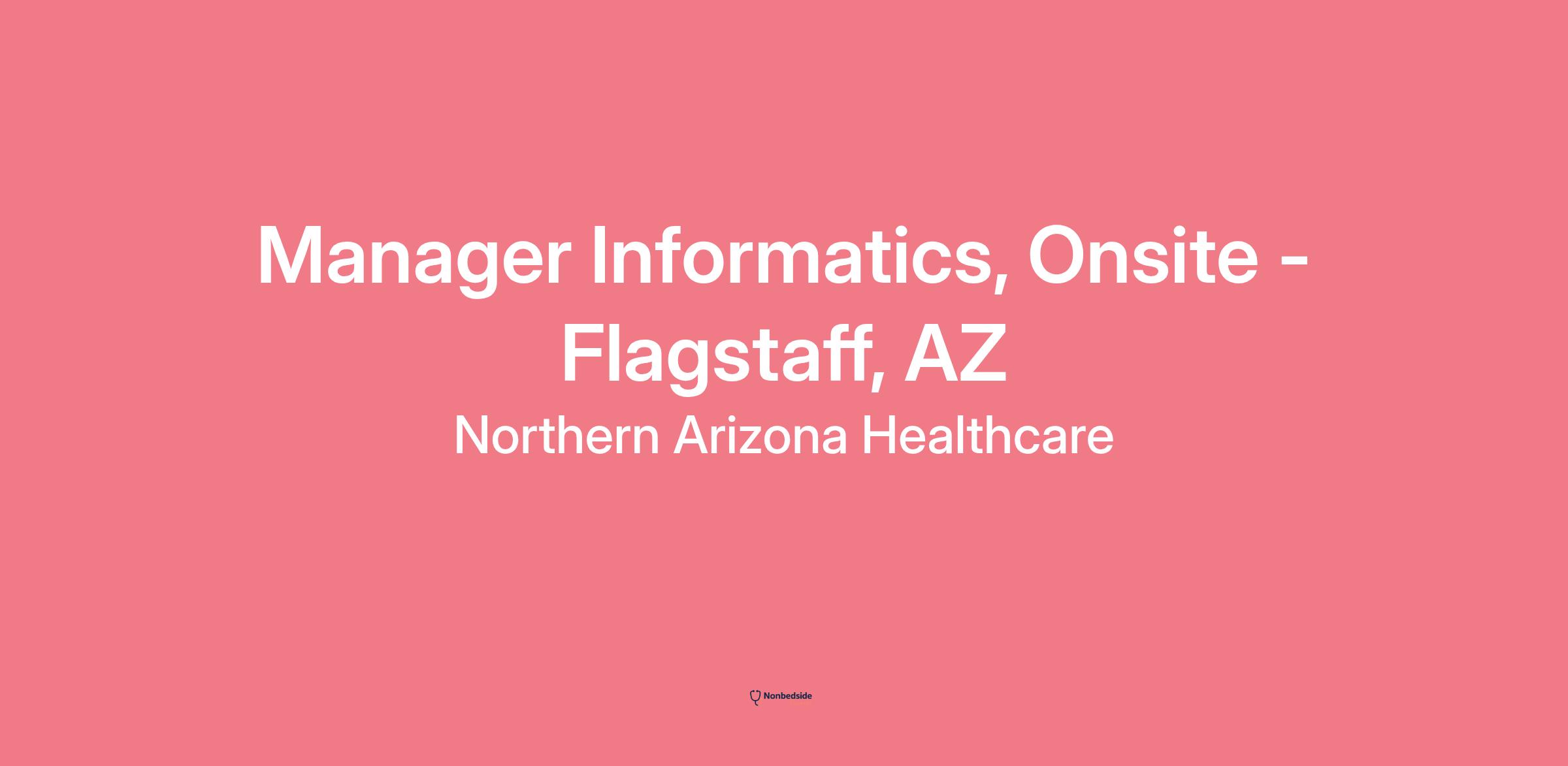 The Manager of Informatics will incorporate theories, principles, and concepts from nursing science, computer science, and information science to manage, communicate and bridge the gap between nursing/clinical practice and Information Technology. This role will develop, grow and maintain a high performing informatics team that meet the current and emerging needs of Northern Arizona Healthcare. The manager ensure maximum use and efficiency of clinical systems using data analytics and reporting to guide direction of priorities. This role is responsible for Informatics education and informatics team oversight.