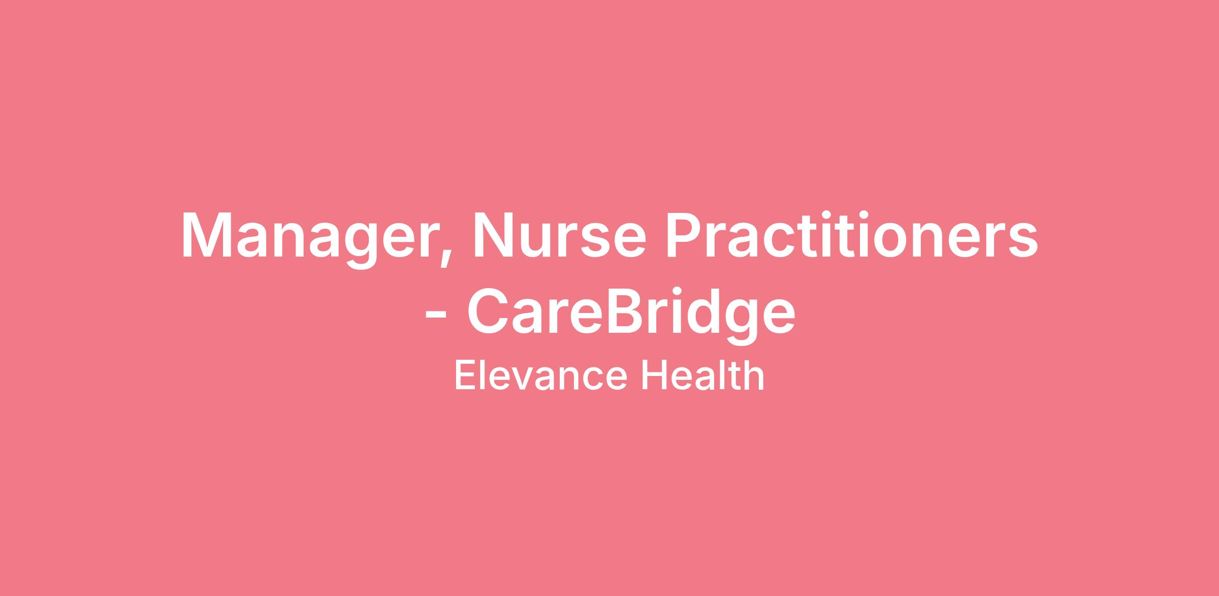 Manager, Nurse Practitioners - CareBridgeJob Description:
