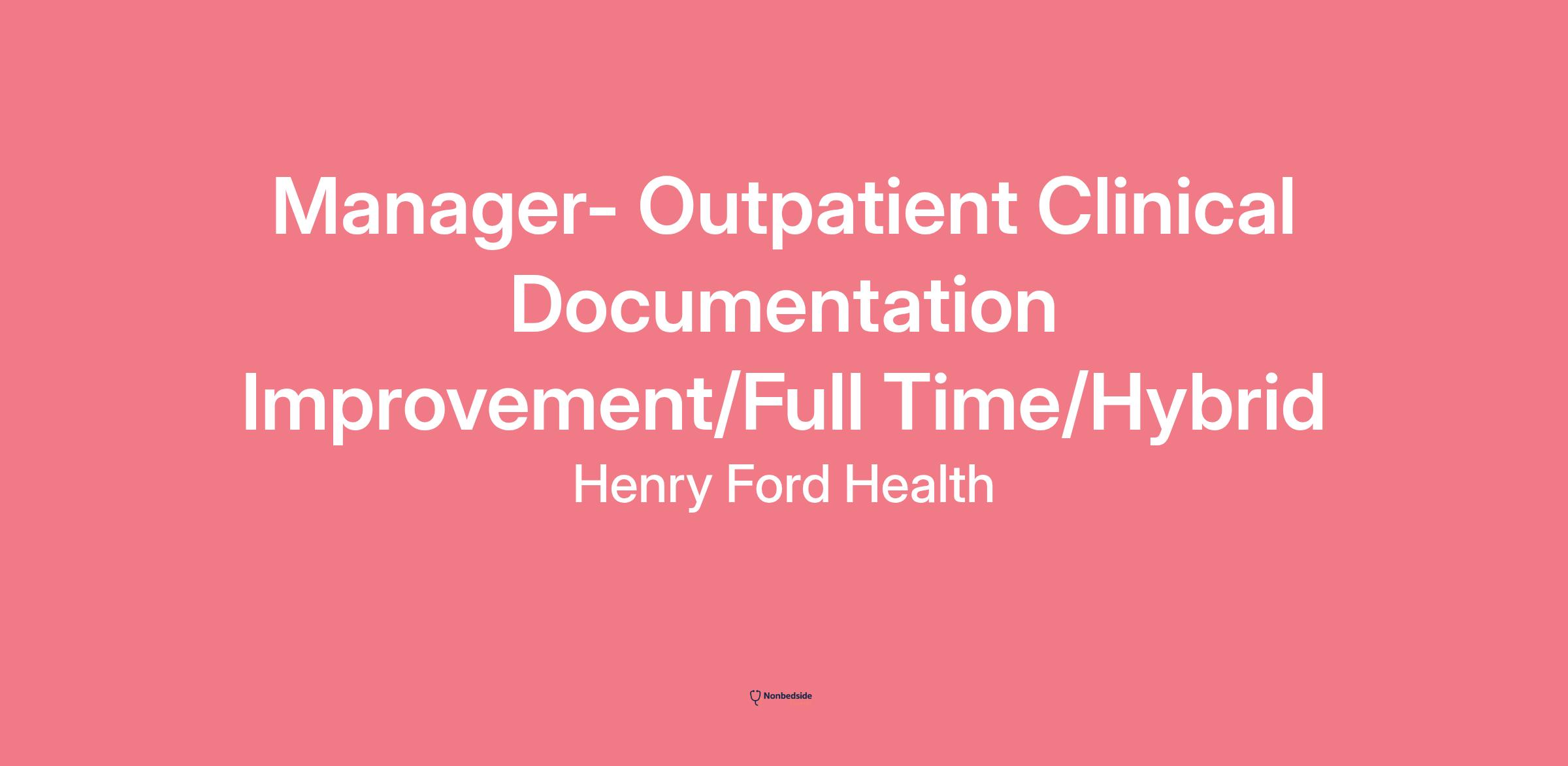 Manager- Outpatient Clinical Documentation Improvement/Full Time/Hybrid
