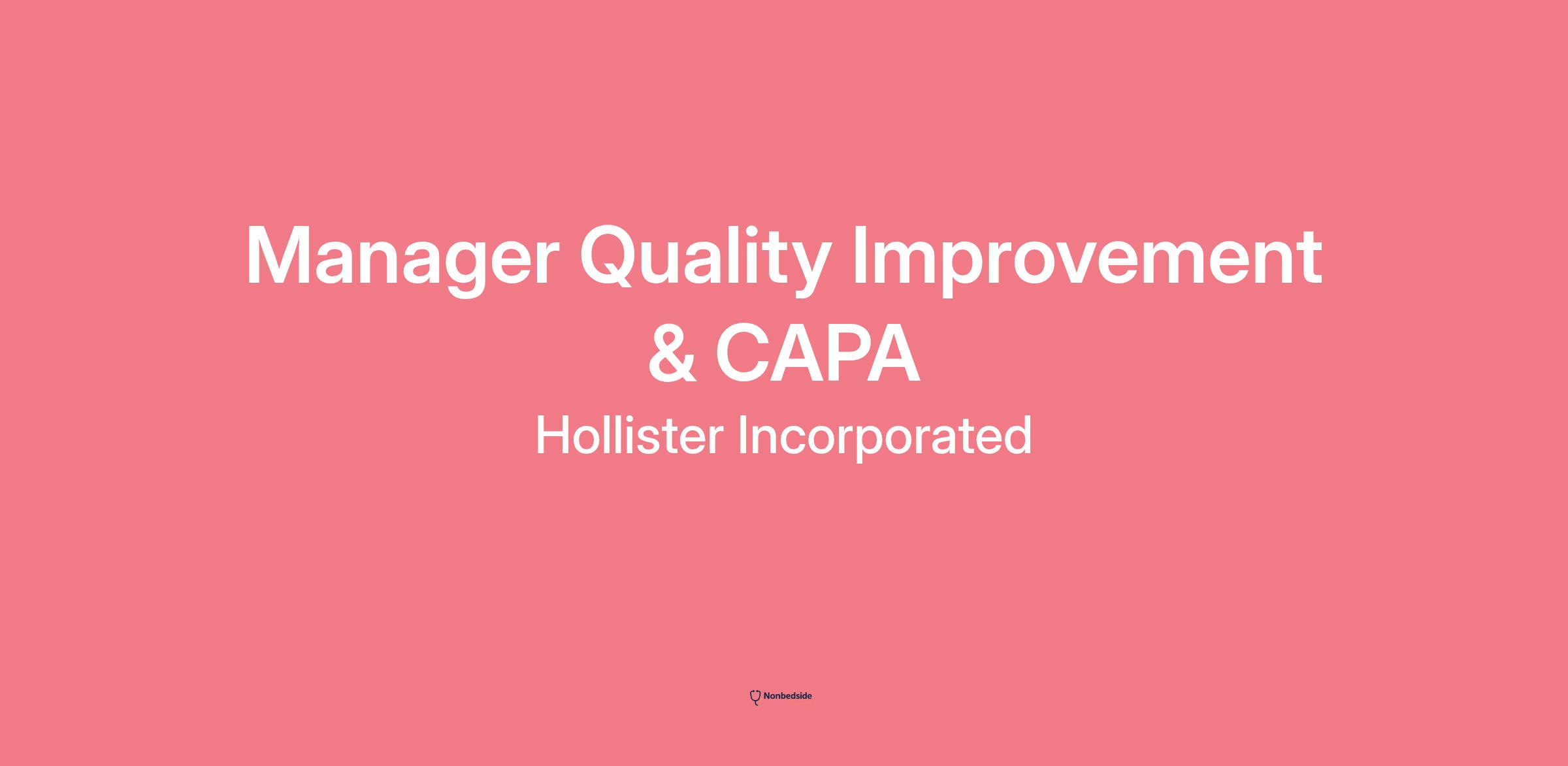 The Manager is responsible for leading, maintaining and continuously improving key elements of Hollister’s Quality Management System (QMS) worldwide. The role will provide leadership, guidance and global support across all Hollister locations. This position is tasked with ownership and management of various global QMS elements such as: