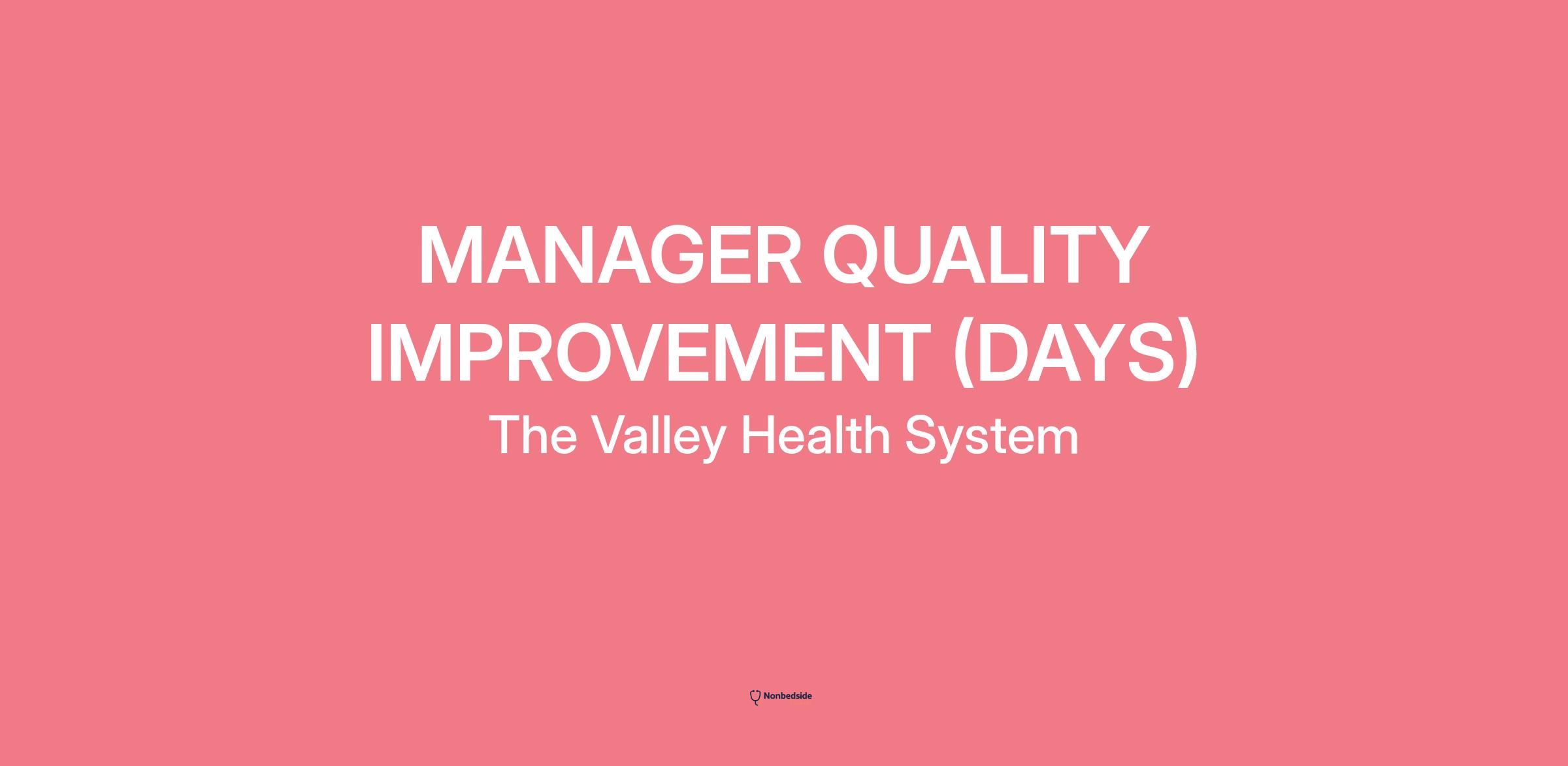 Join to apply for the MANAGER QUALITY IMPROVEMENT (DAYS) role at The Valley Health System