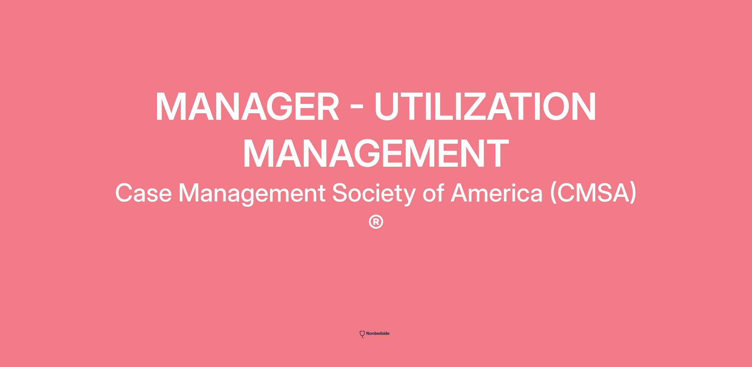 MANAGER - UTILIZATION MANAGEMENT