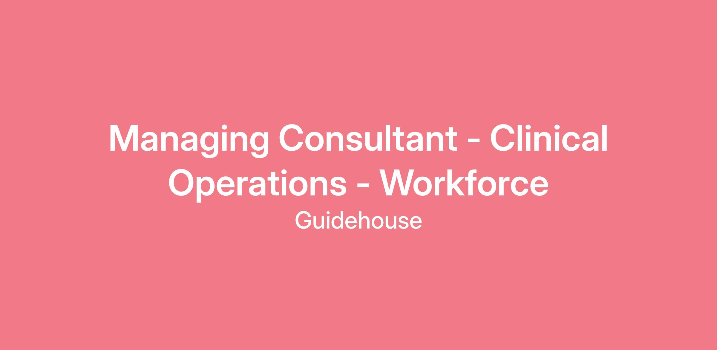 The Managing Consultant Workforce will lead the design, development and implementation of integrated (clinical effectiveness and system operations) optimization efforts within resulting in the workforce and capacity management solution. He or she will manage the work stream efforts to timeline / scope / budget across the larger platform.