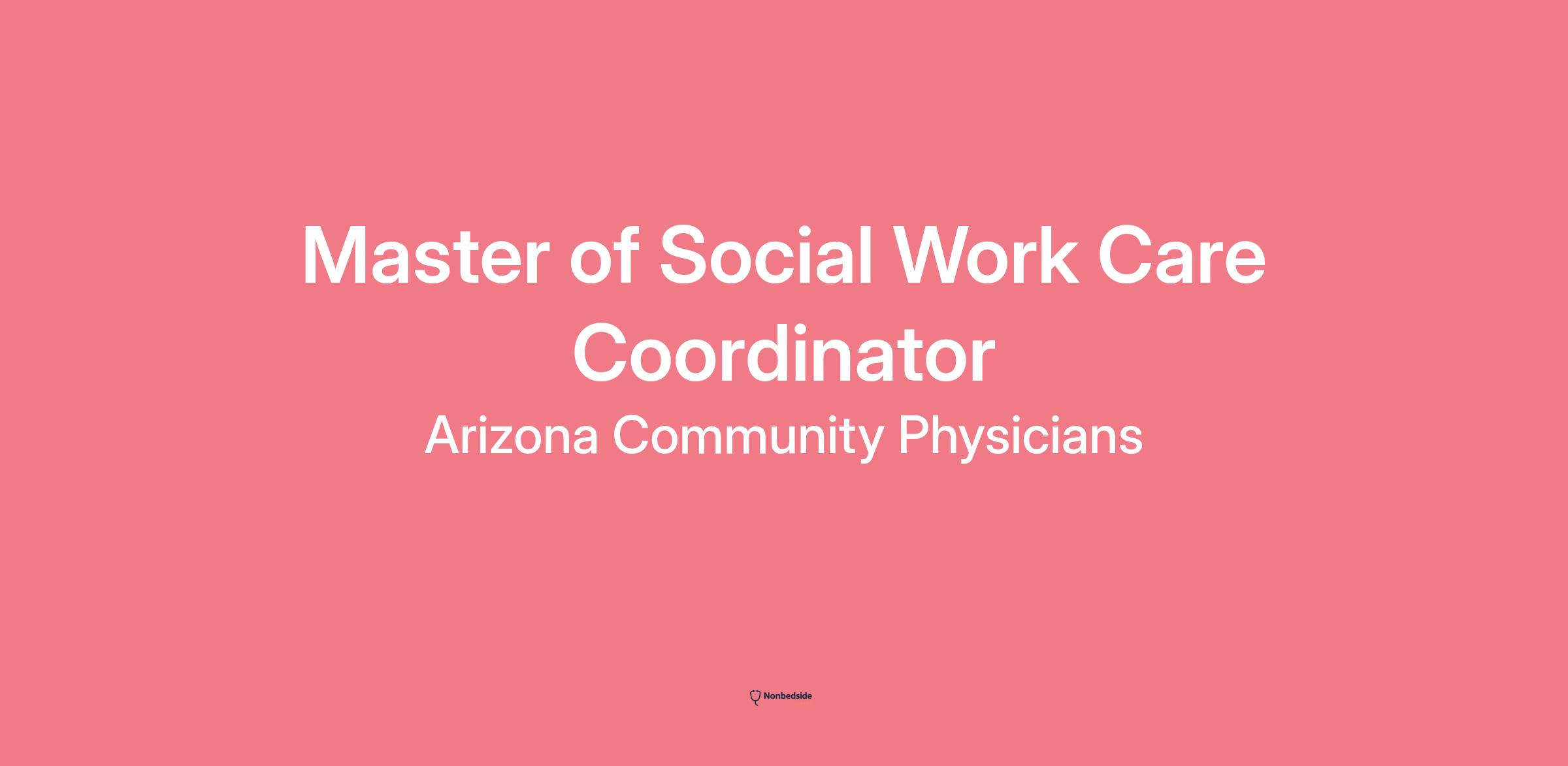The Master of Social work (MSW) Care Coordinator works under the direction of the Accountable Care Organization (ACO) Medical Director and RN Care Coordination Manager in Care Management and Population Health. A prime area of focus will be case management of higher risk pediatric patients. Other areas of focus may include transitional care management, population health management, quality improvement, staff education, engagement and patient support through various Care Management Programs.