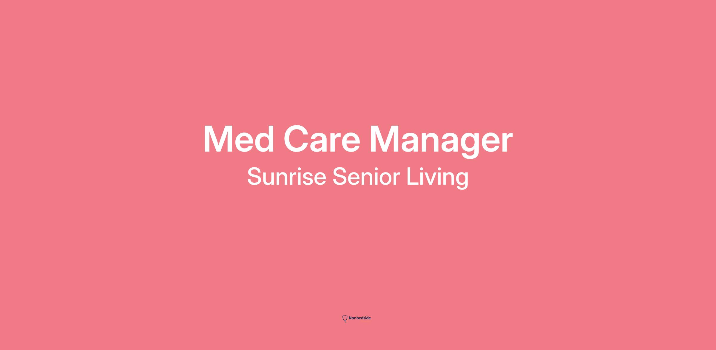 JOB OVERVIEW The Medication Care Manager is responsible for providing the highest degree of quality care and services by administering medication and treatments in a safe organized manner. Responsibilities include but are not limited to administration of medications, documentation of medication administration, and providing resident care while demonstrating the Mission for Sunrise Senior Living, "to champion the quality of life for all seniors" in accordance with federal, state/provincial, and local laws, standards, and regulations and Sunrise Senior Living policies to promote the highest degree of quality care and services to our residents.