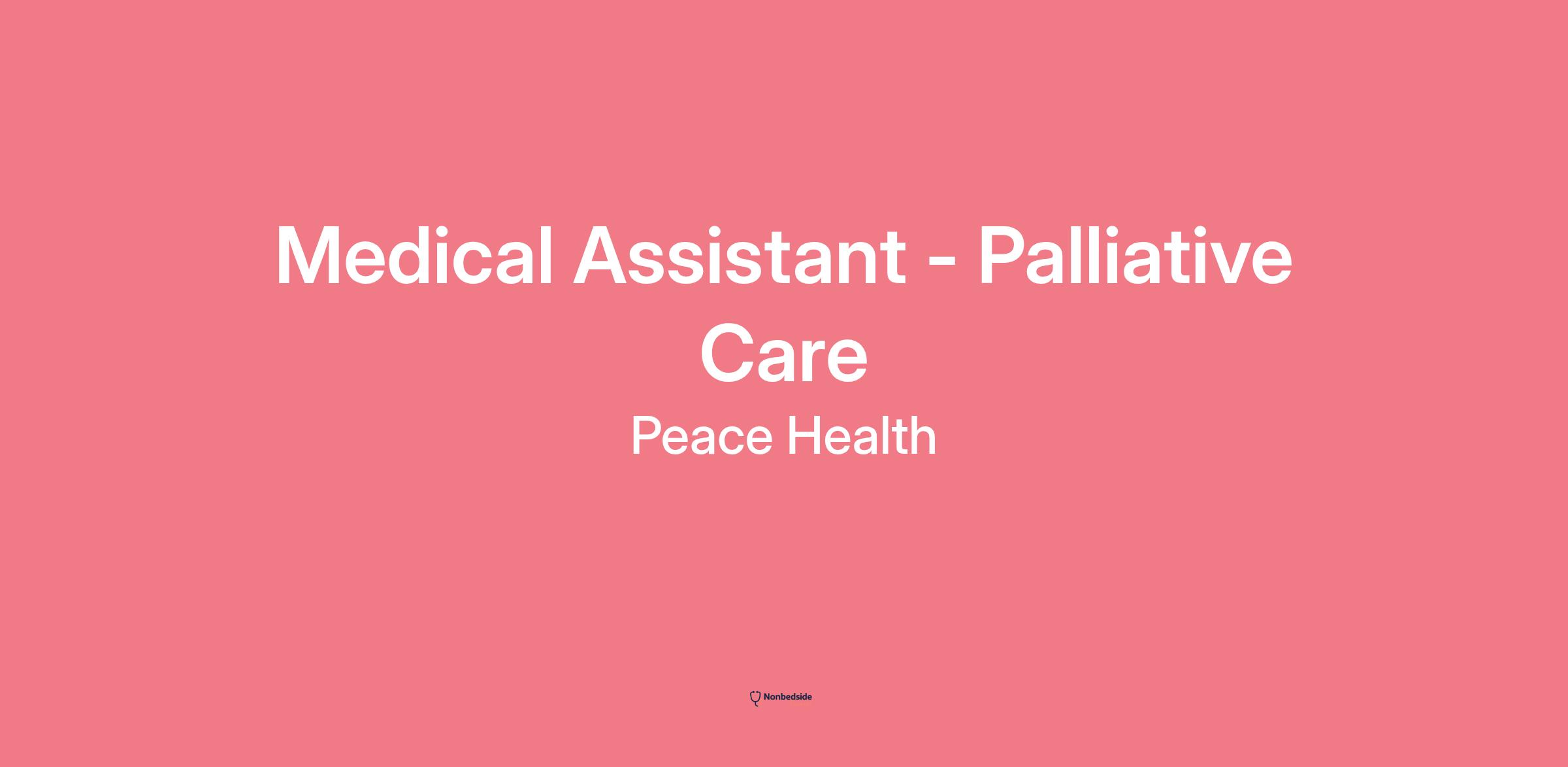 PeaceHealth is seeking a Medical Assistant - Palliative Care for a Per Diem/Relief, 0.00 FTE, Day position. The salary range for this job opening at PeaceHealth is $24.99 - $33.73. The hiring rate is dependent upon several factors, including but not limited to education, training, work experience, terms of any applicable collective bargaining agreement, seniority, etc.