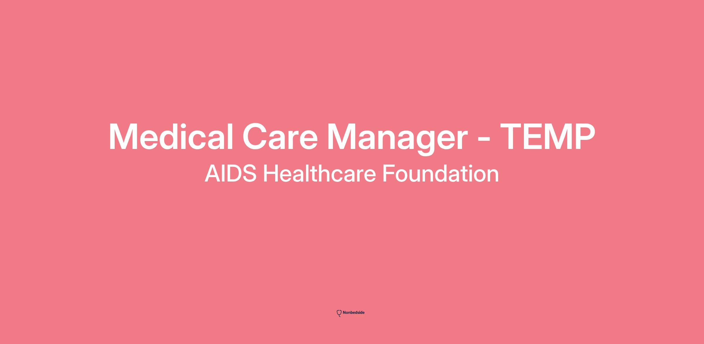 Join to apply for the Medical Care Manager - TEMP role at AIDS Healthcare Foundation