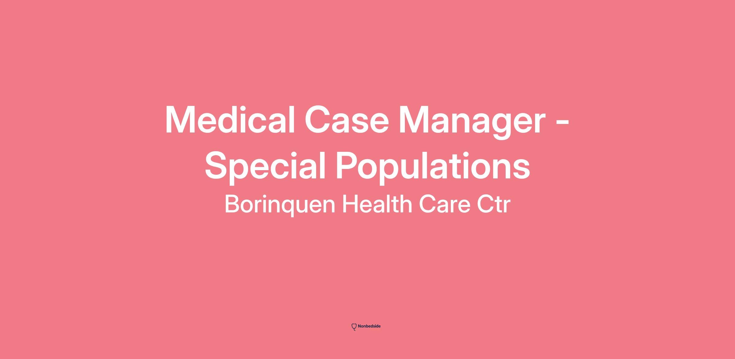 Medical Case Manager - Special Populations Join to apply for the Medical Case Manager - Special Populations role at Borinquen Health Care Ctr