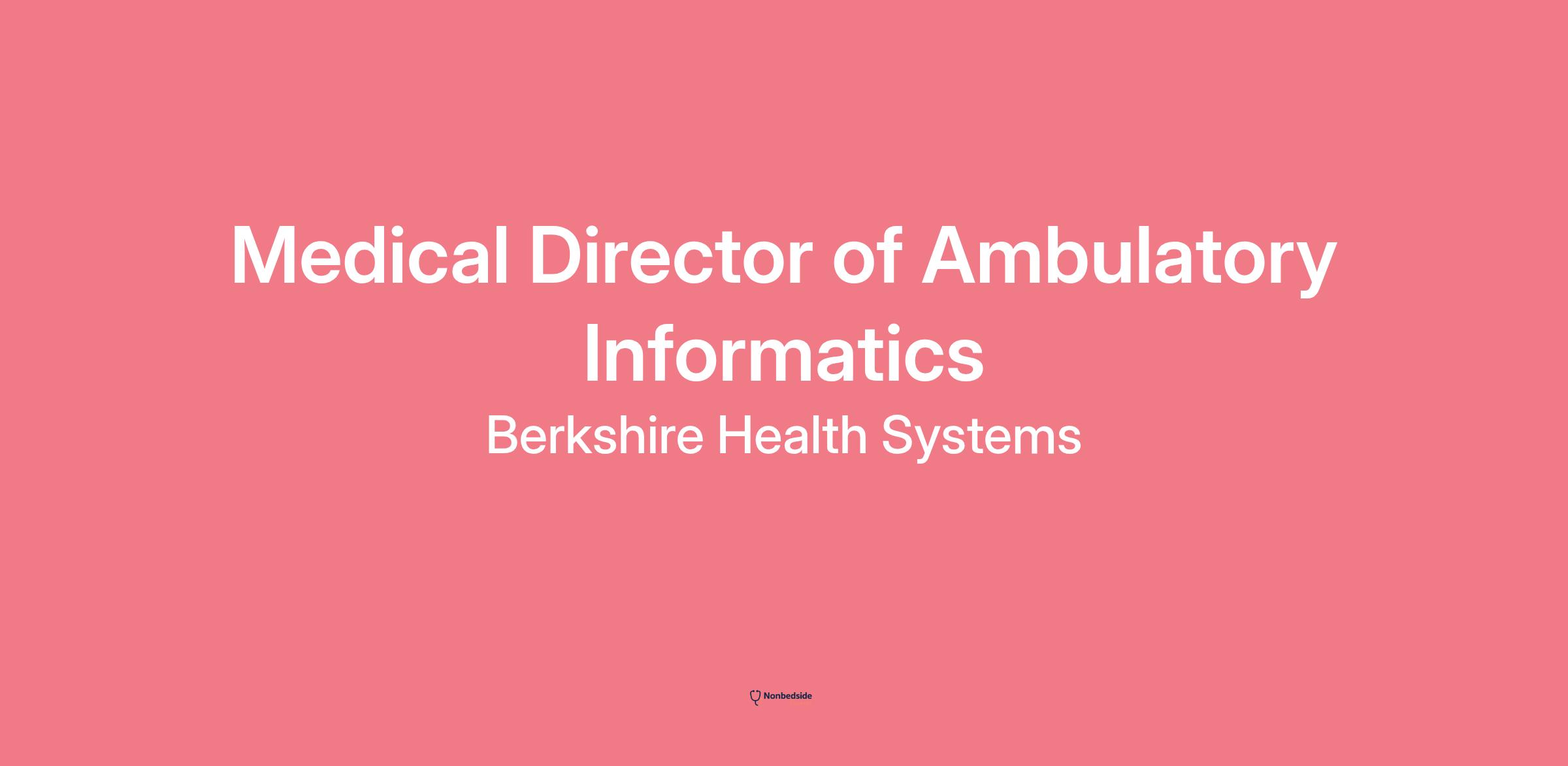 Why Berkshire Health Systems Impactful work: Lead ambulatory informatics across a diverse outpatient network including primary care and specialties, with direct influence on patient outcomes and clinician experience.