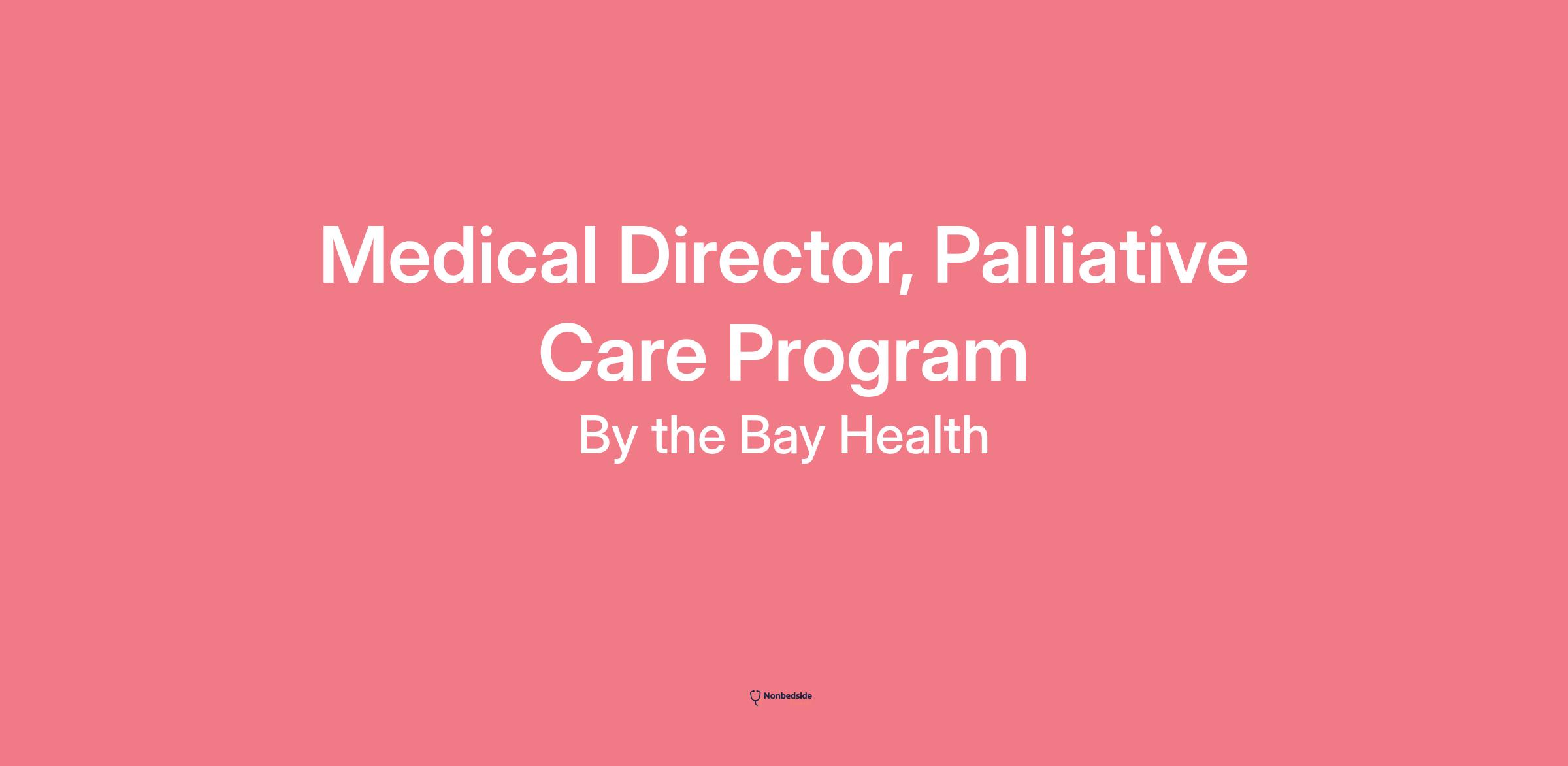 Overview Medical Director of the Palliative Care Program at By The Bay Health, a non-profit established in 1975. Provides clinical, operational, and strategic leadership to ensure delivery of high-quality, patient-centered palliative care services. Partners with the interdisciplinary team to expand program reach, maintain compliance, and strengthen stakeholder relationships while fostering a supportive environment for staff and learners.
